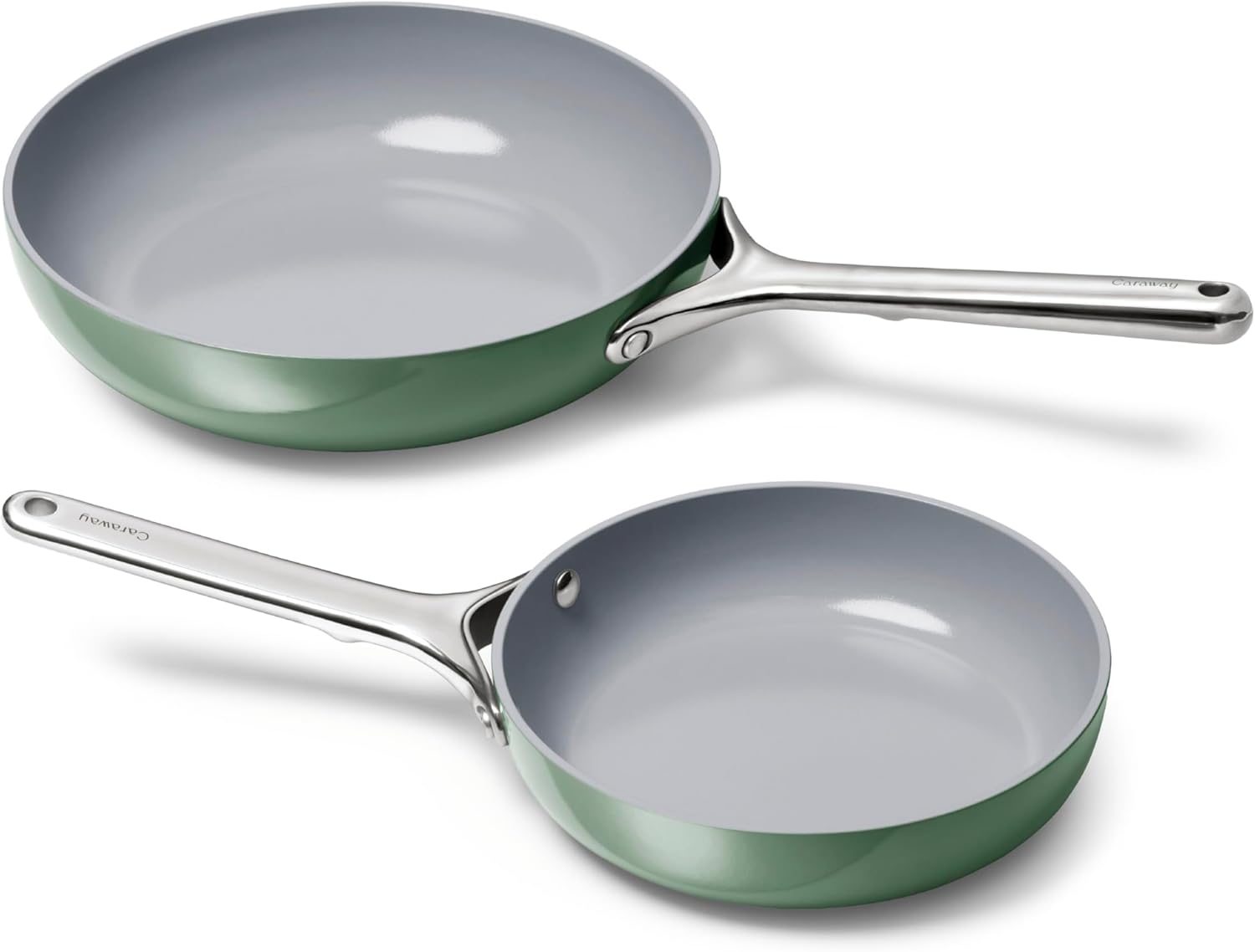 Caraway Fry Pan Duo - Nonstick Ceramic Frying Pan (8" & 10.5”) - Non Toxic, PTFE & PFOA Free - Oven Safe & Compatible with All Stovetops (Gas, Electric & Induction) - Sage