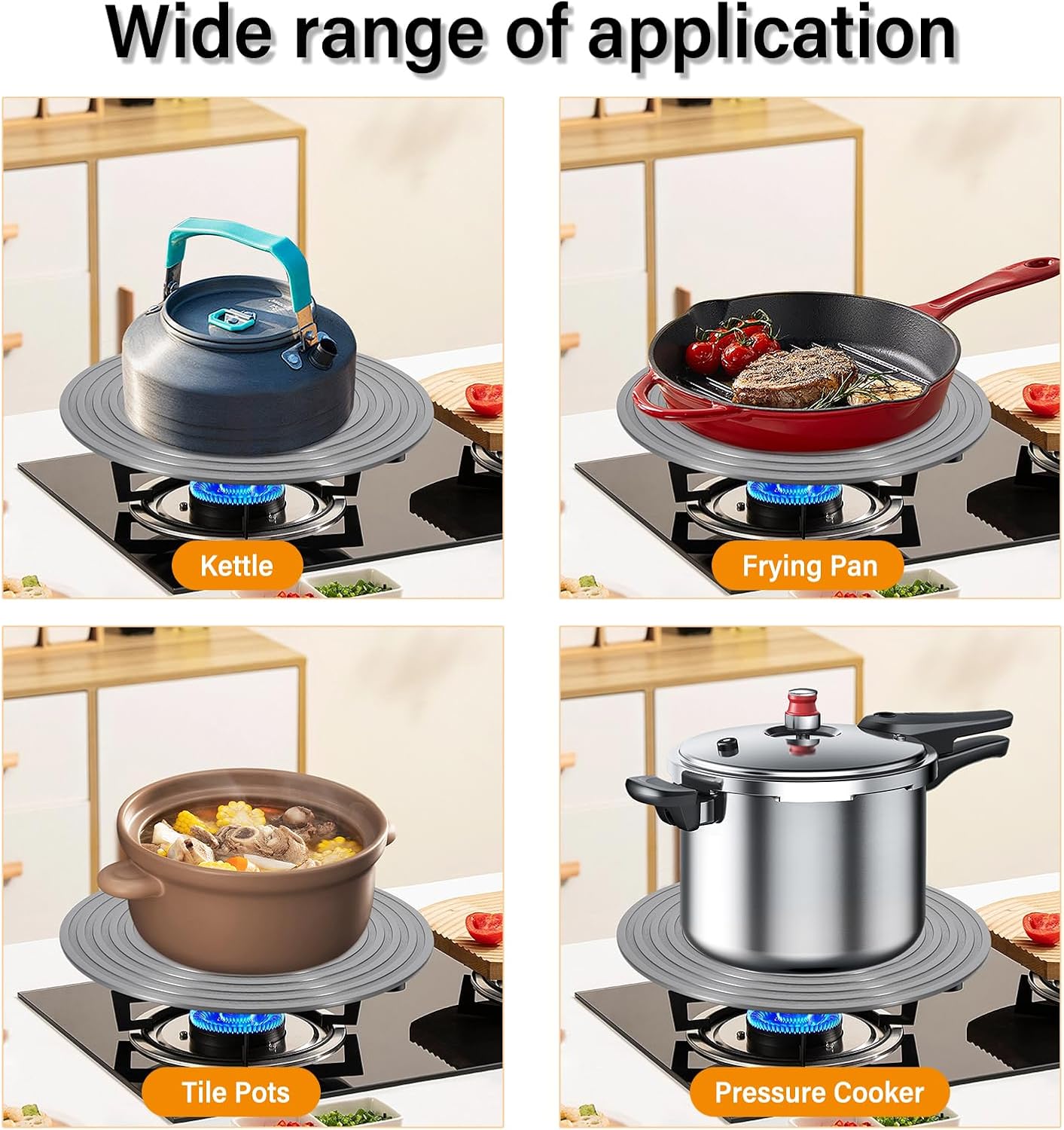• DOUBLE-SIDED NON-SLIP DESIGN: Our diffuser features a thick, double-sided non-slip thread design that ensures stable fixation on your kitchen cookware. This prevents side slippage and ensures safety when using it on a gas stove. The diffuser conducts heat evenly, effectively preventing fires, and keeping your stove clean and secure.