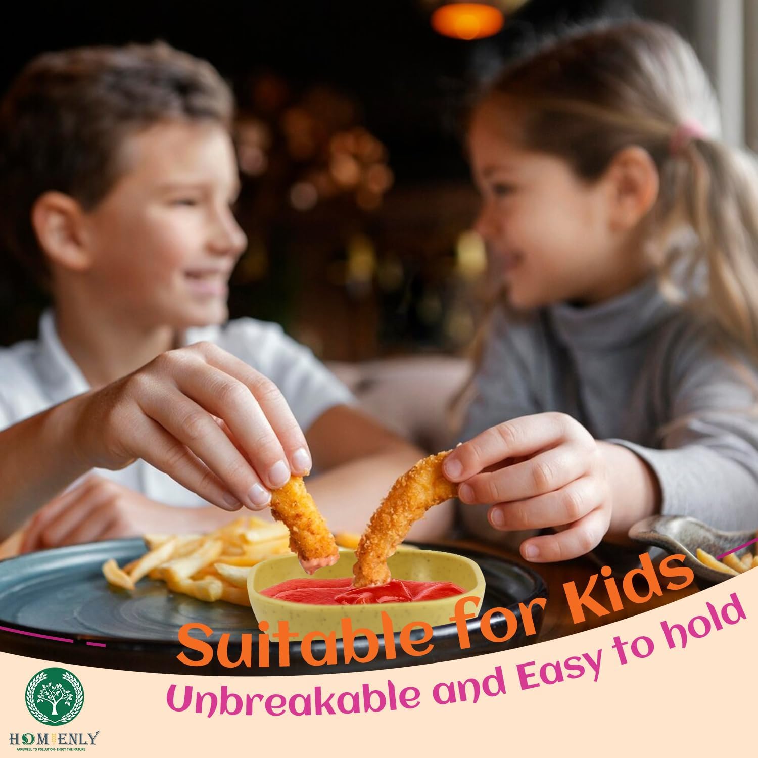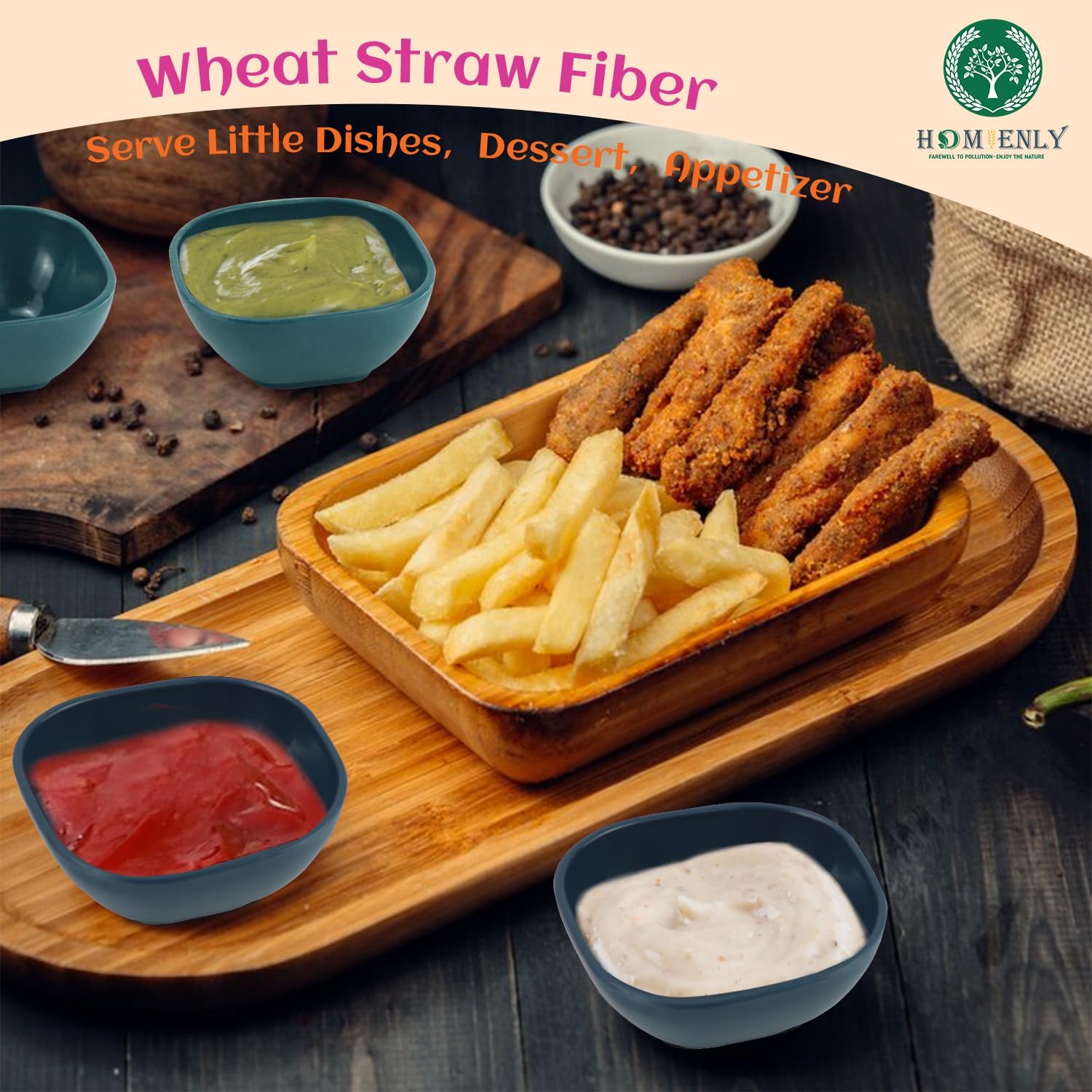 • SOY SAUCE DISHES: 4.5 oz wheat straw dip bowls, perfect for individual portion serving, such as ketchup for dipping chip, butter for dripping shrimp, chutney, and olive oil. And they are able to serve little dishes, dessert, appetizer and so on.