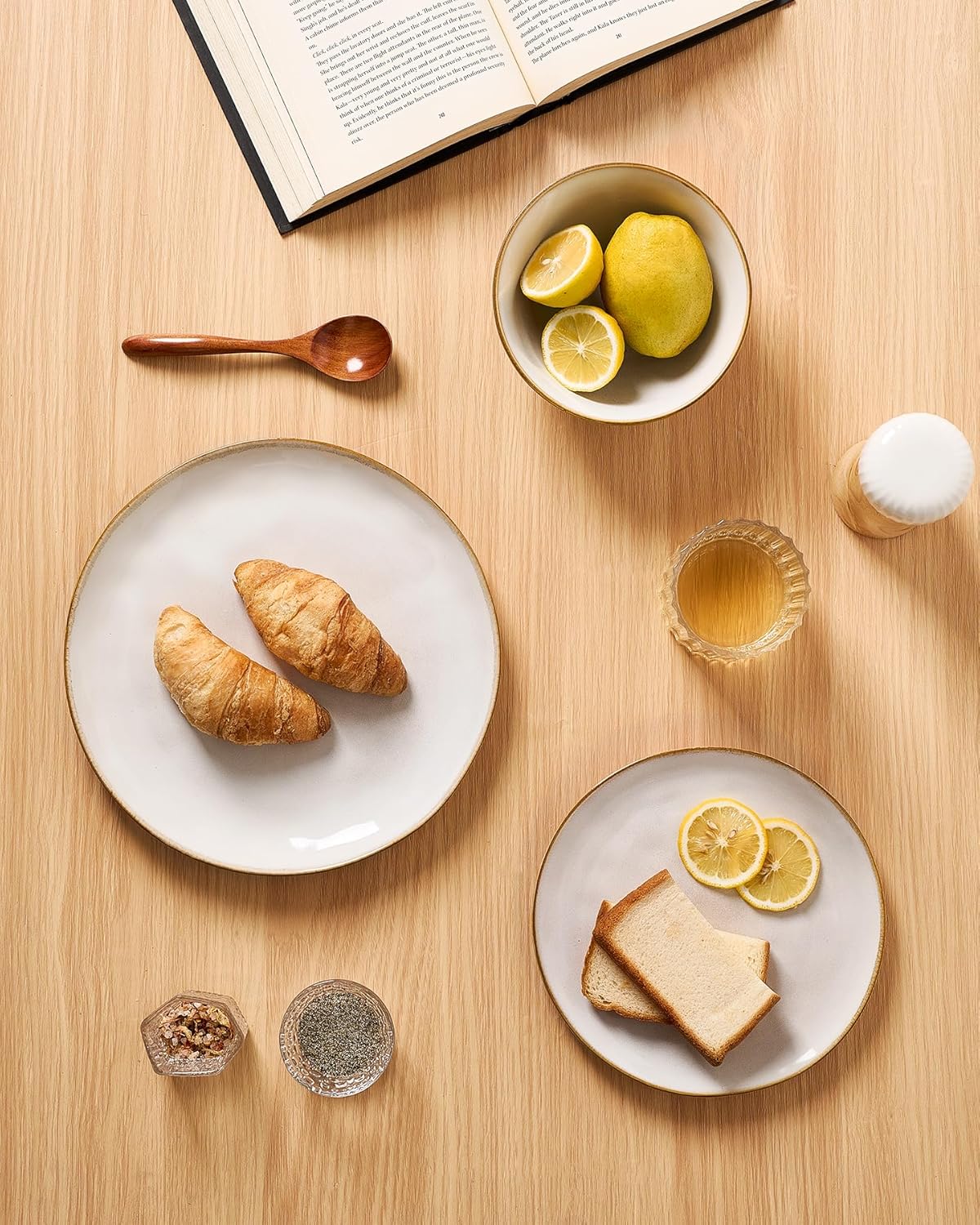• 【Double Reactive Glaze】Double reactive glaze are combined through firing at high temperatures to create a special and fantastic glaze color. The color of the same set of tableware may have some differences, so that each plate and bowl is unique. This glaze also tends to show different colors depending on the light. The color may be a little different from what you see on the screen