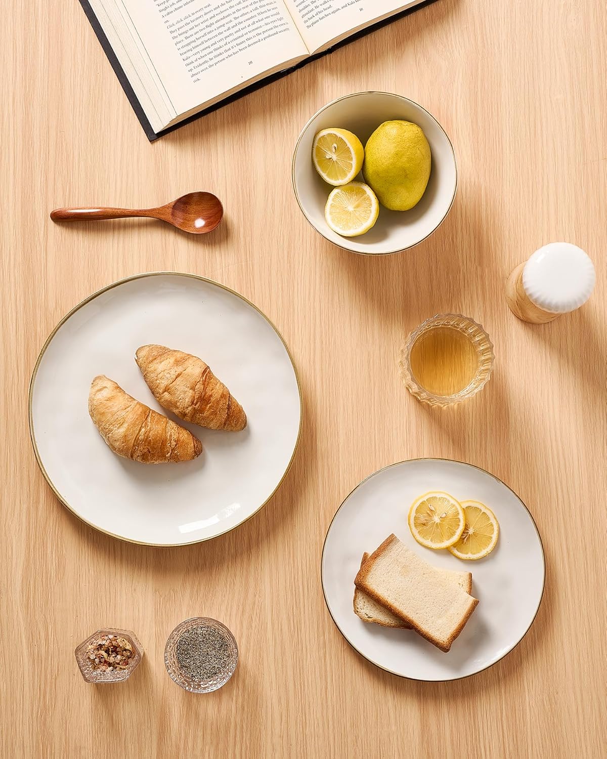 • 【Celebratory Treasure】Tableware with exquisite glaze, complete with dinner plates, salad plates and bowls,serves as an excellent present for commemorating new beginnings and cherished occasions