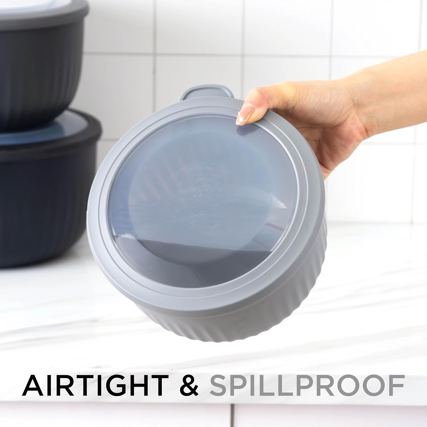 • Nesting Bowls and Sturdy Lids for Easy Stacking - Our ombre colored bowl set nests for easy storage and convenience, a functional set that saves you space. The strong lids allow for staking in the fridge and freezer, and the clear top allows for easy visibility.