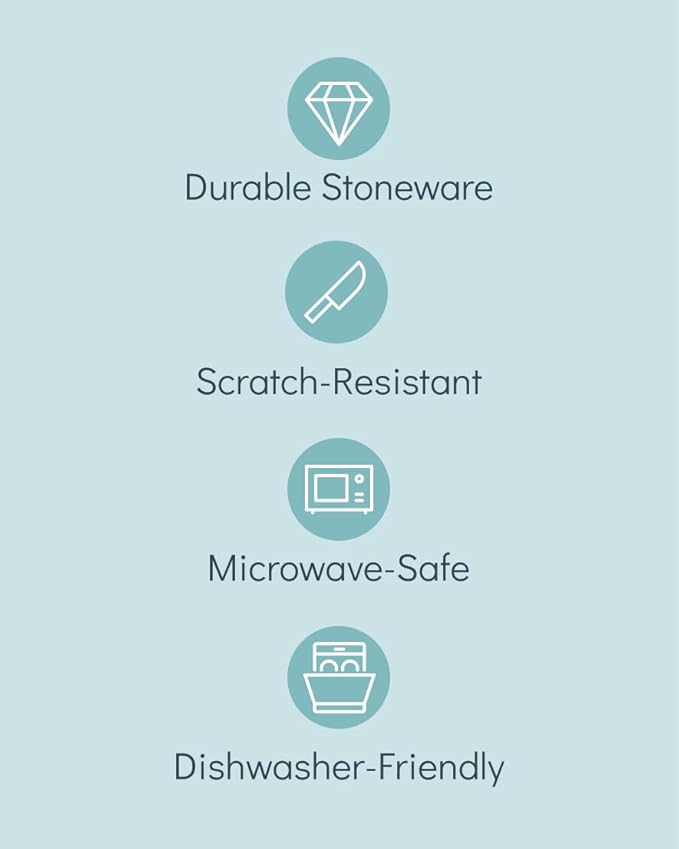 • ✅ Pure Joy & Culinary Delight: Crafted from solid stoneware with a high-fired, glazed, and scratch-resistant surface, this dish set for 4 is for those who cherish life's beautiful moments and appreciate top-notch quality in their dishware set