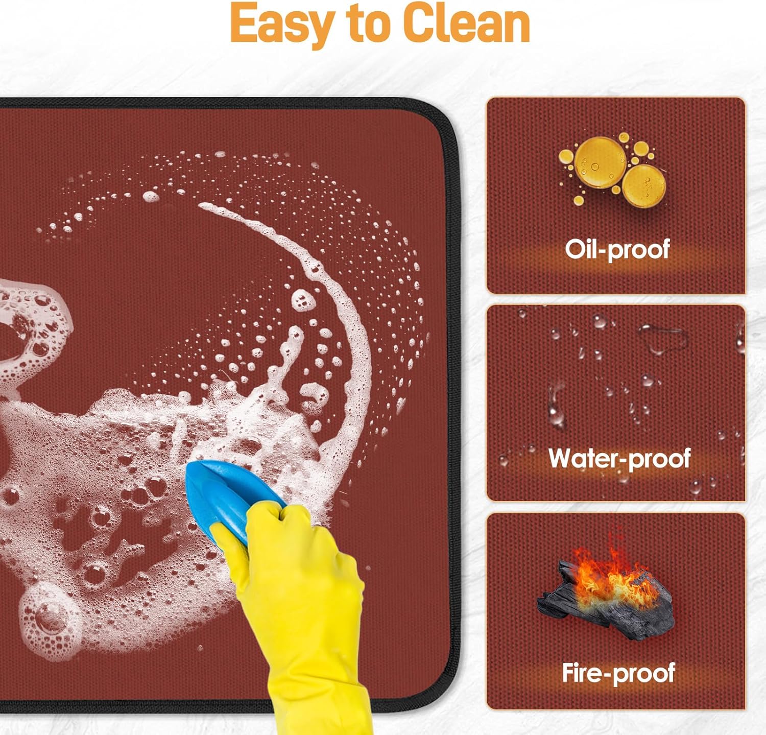 • 【1022℉ Fireproof & Heat Resistant】Different from other felt material mats, our heat resistant mats for countertop is made of fiberglass, heat resistant silicone resin coated on both sides, which can provide heat resistance up to 550℃/1022℉. Our heat resistant mats have finely stitched edges. It won't stick, tear, curl or crack from heat.