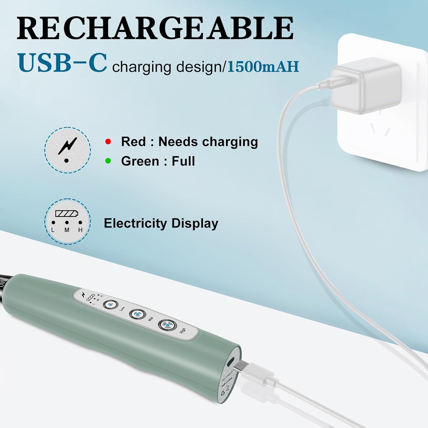 • USB-C Charging Long Battery Life: Our electric frother wand adopts USB charging design, which is more environmentally friendly and lighter than the battery type, allowing you to charge it anytime and anywhere. It can be used at home, in the office, or even taken out for camping. The built-in battery capacity is 1200mAh, which can be used several times a day after being fully charged. This drink mixer handheld also includes a charging indicator light that lights up red when charging and green when fully charged.