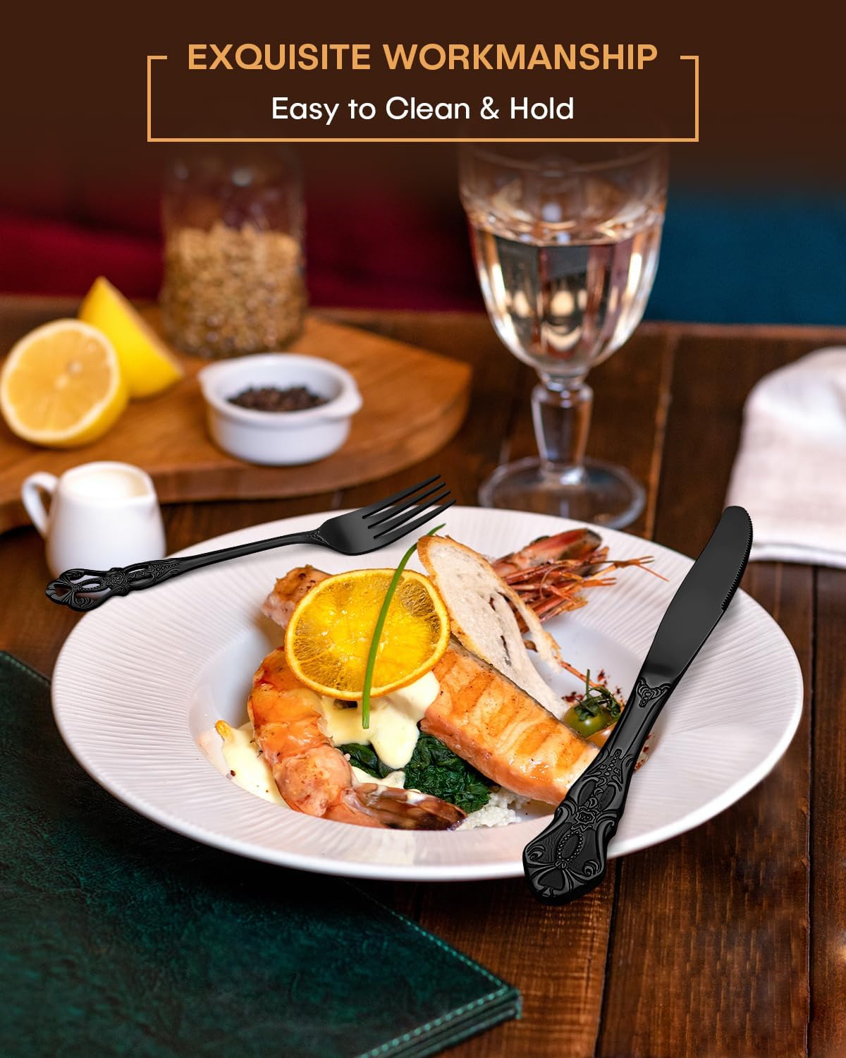 • Excellent Quality - These black flatware sets are made of durable stainless steel material and high-quality craftsmanship ensure durability and longevity. Multiple times of fine polishing gives the cutlery set not only a bright mirror effect but also smooth edges. Its exquisite appearance and shiny surface are sure to impress your guests. Redefine Premium of silverware and enjoy accessible luxury.