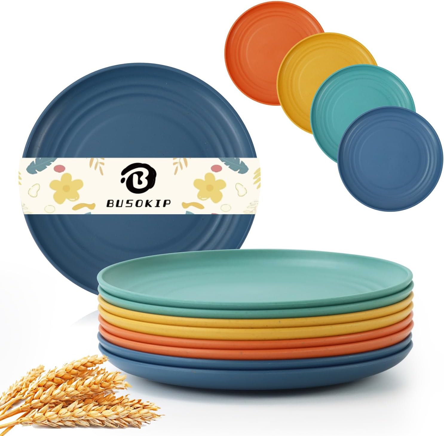 • 【Multiple Colors and Usage】 BUSOKIP 5.7 inch wheat straw plates set of 8 include 4 colors: dark blue, green, yellow and orange. Beautiful wheat straw dinnerware dishes for your kitchen. These colorful plates are great for dessert, snack, everyday meal, picnic and more. If you have any questions, feel free to let us know and we will try our best to help you.