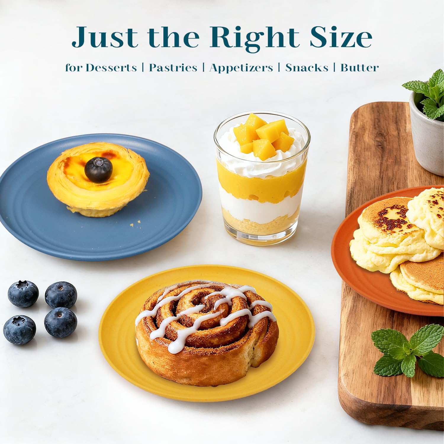 8 Pack Appetizer Plates 5.7 Inch, Lightweight Wheat Straw Plate Kids Plates, Plastic Plates Reusable, Microwave & Dishwasher Safe Small Plate for Kitchen, Camping (Multicolor)