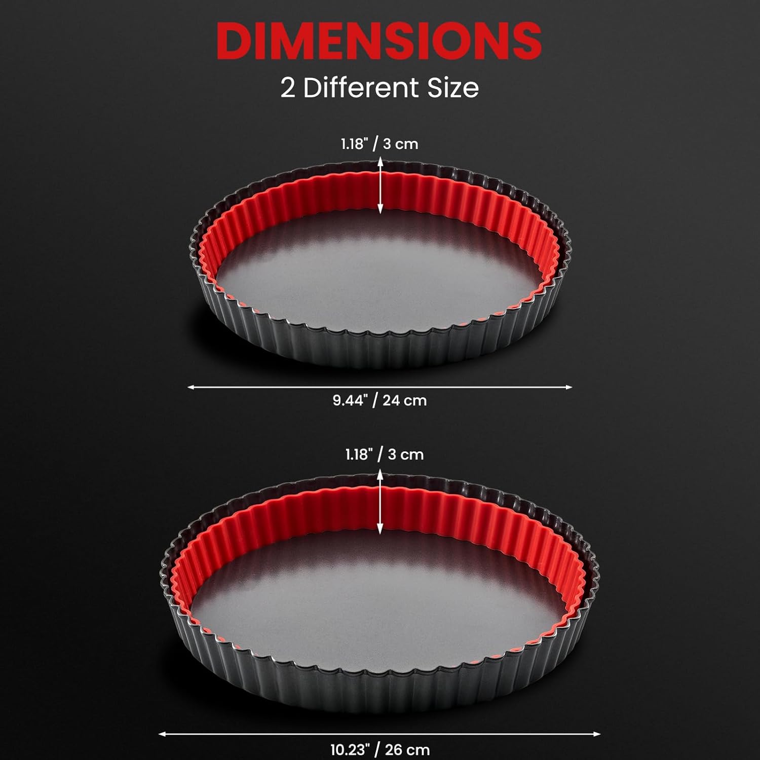 • 【Create the Perfect Tart】:Experience baking excellence with versatile tart baking pan with removable bottom and silicone shaper from Maywe Tanso.Our carbon steel pan sets includes 2 pieces of 9" and 10",make it perfect for your exquisite quiches and tarts.Make your baking process fun and let everyone expect the party to come! (9":24 cm diam. x 3 cm depth ;10":26 cm diam. x 3 cm depth)
