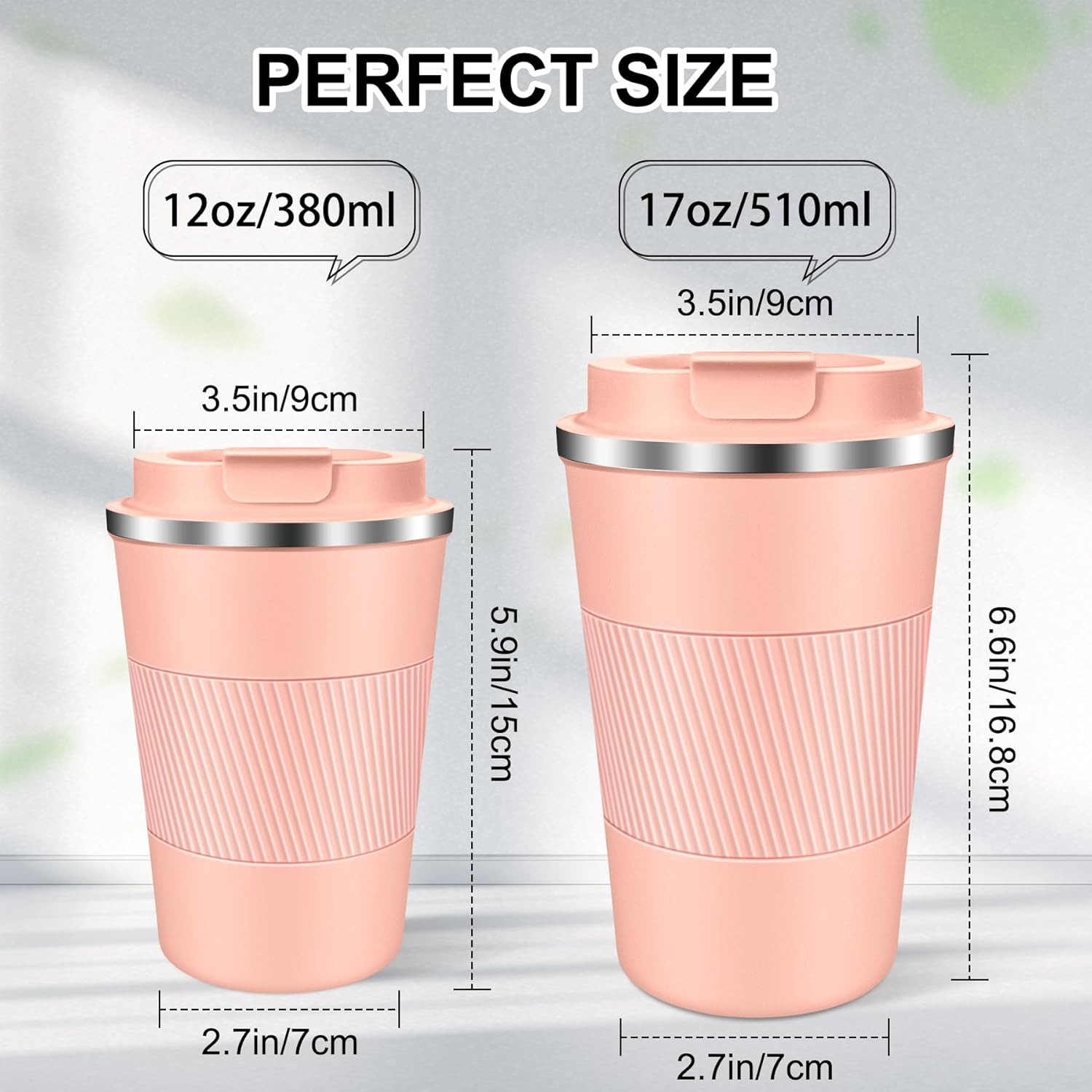 • 【Ideal Size】Travel coffee mugs are available in 2 sizes (12oz/380ml, 17oz/510ml) and a variety of colors to choose from. The diameter of the bottom of the cup is 2.7in/ 7cm, which is compact and lightweight enough to fit in your car cup holder. This portable coffee mug is suitable for indoor and outdoor, office, party, traveling and many other occasions.