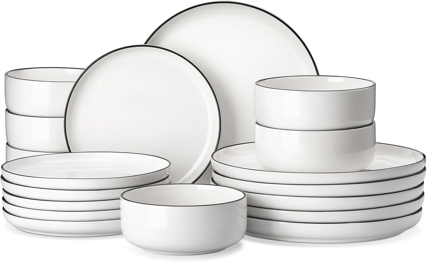 MALACASA Plates and Bowls Sets, 18 Pieces Modern Porcelain Dinnerware Set for 6 White Kitchen Dinner Ware Set wtih Black Rim Ceramic Dishware Dishes Microwave and Dishwasher Safe, Series LUNA