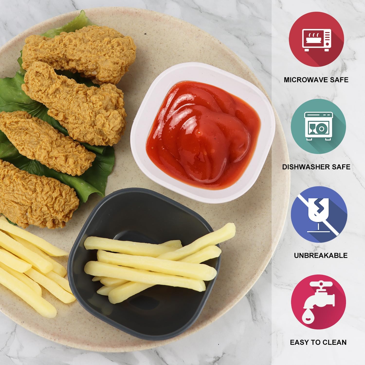 • 【𝗨𝗻𝗯𝗿𝗲𝗮𝗸𝗮𝗯𝗹𝗲 & 𝗩𝗶𝗯𝗿𝗮𝗻𝘁 𝗖𝗼𝗹𝗼𝗿】- Enjoy worry-free dipping with Wrova 5oz side dish Bowls - the unbreakable solution to messy snacking. With classic black - these bowls will quickly become your favorite for condiment, snack, and more without the fear of accidental spills or breakage.
