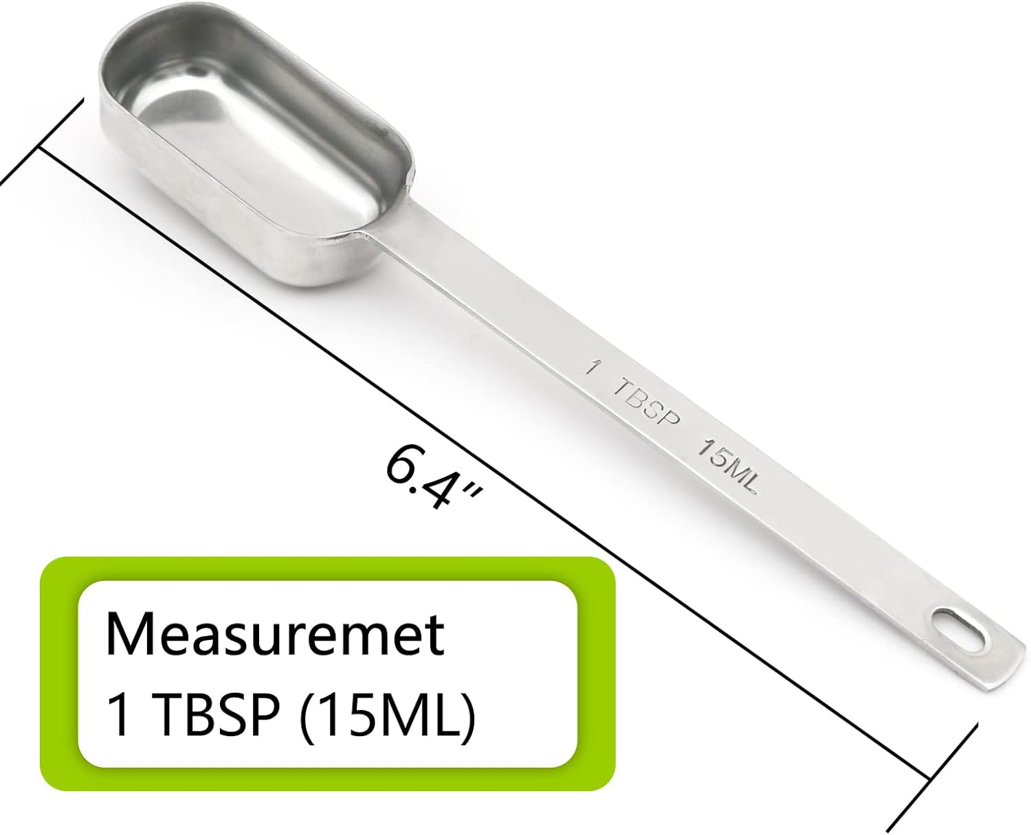 • 【Precise Scales】 The measuring spoon is so precise that it can be the perfect partner for your cooking. The teaspoon has a clear scale on the handle in US and metric.⬤1 Tbsp | 15 mL | 3 Teaspoon | 1/16 Cup | 1/2 Oz