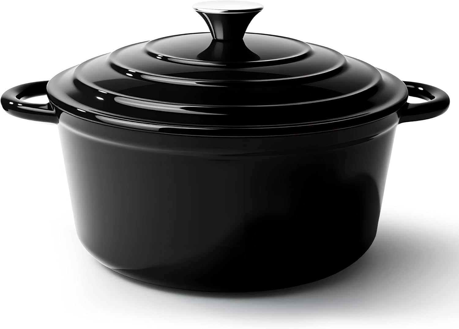 4.5 Quart Dutch Oven Pot with Lid, Non Stick Enameled Cast Iron Dutch Oven for Bread Baking,Heavy-Duty, Oven Safe Ceramic Cookware Up to 500°F for Baking, Braising, Stews, Roasting, Black