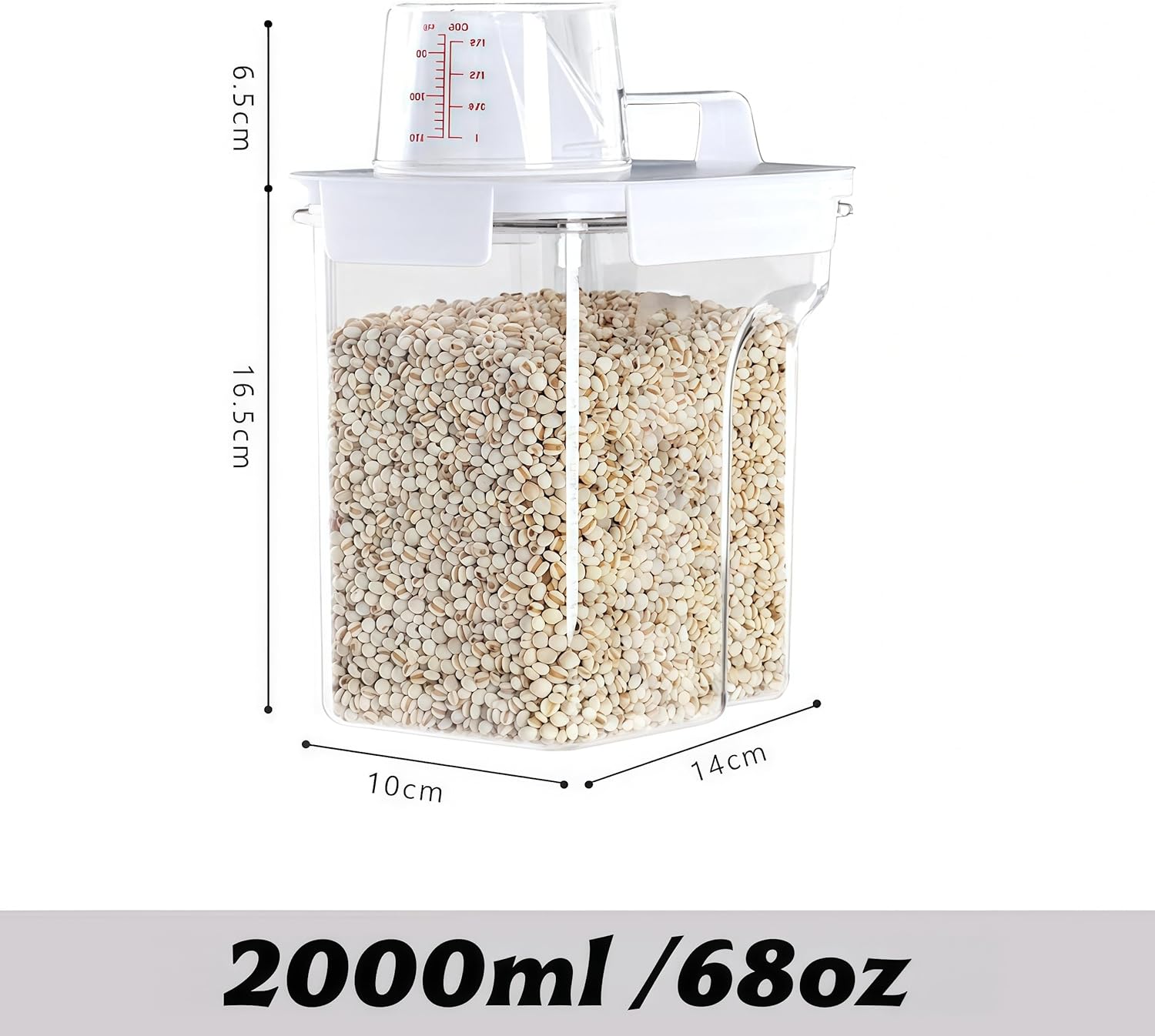 Airtight Food Storage Canisters with Measuring Cup - Ideal for Cereal, Flour & Sugar | Kitchen Pantry Organization Containers, Dry Food Storage Canisters (2000ml)