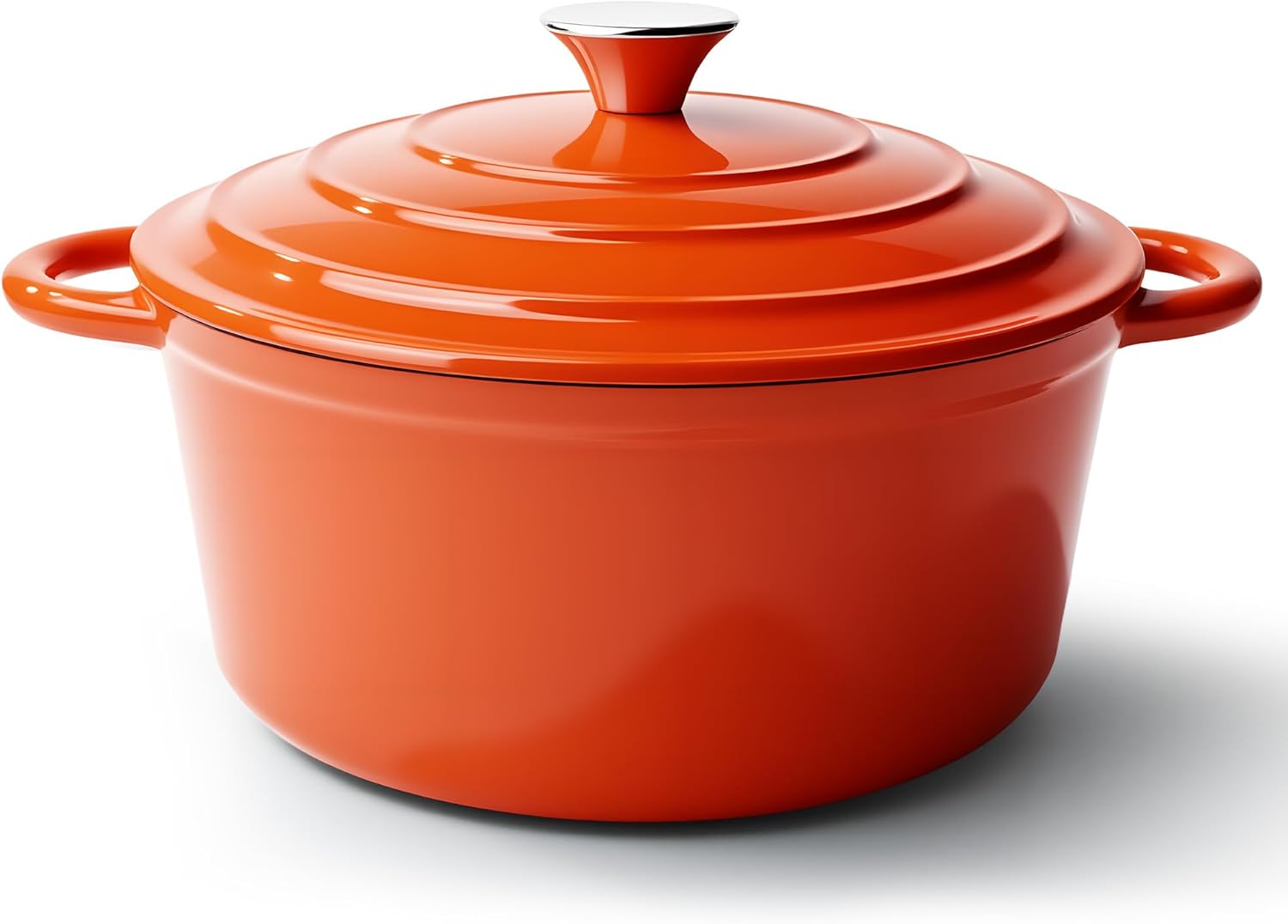 4.5 Quart Dutch Oven Pot with Lid, Non Stick Enameled Cast Iron Dutch Oven for Bread Baking, Heavy-Duty, Oven Safe Ceramic Cookware Up to 500°F for Baking, Braising, Stews, Roasting, Orange