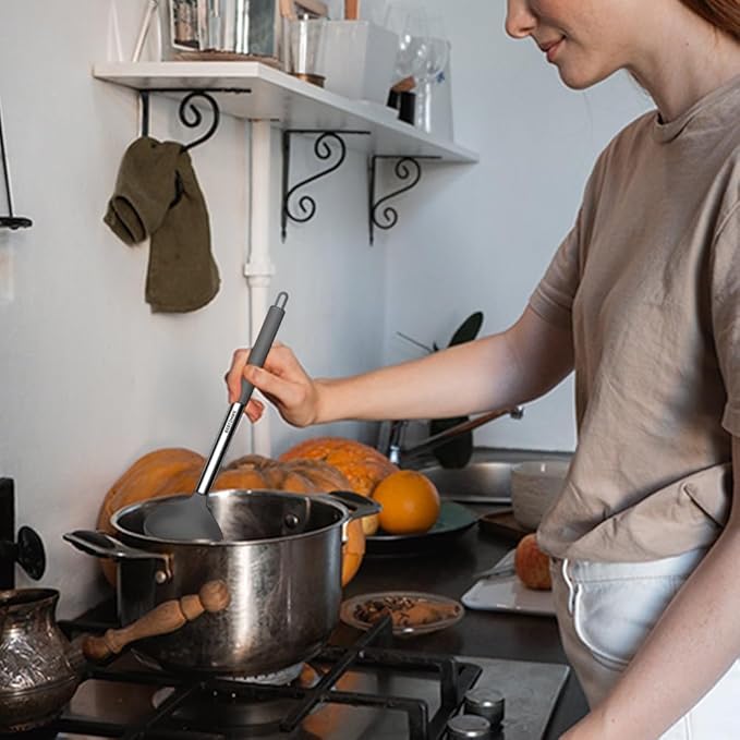 • LASTS A LIFETIME: The most durable utensils set in the market features thick handles designed using top-grade 304 stainless steel, and utensil heads made out of durable silicone. Even with daily use, they’re designed to not bend like plastic utensils, not break like wooden kitchen tools, and not rust like other metallic utensils.