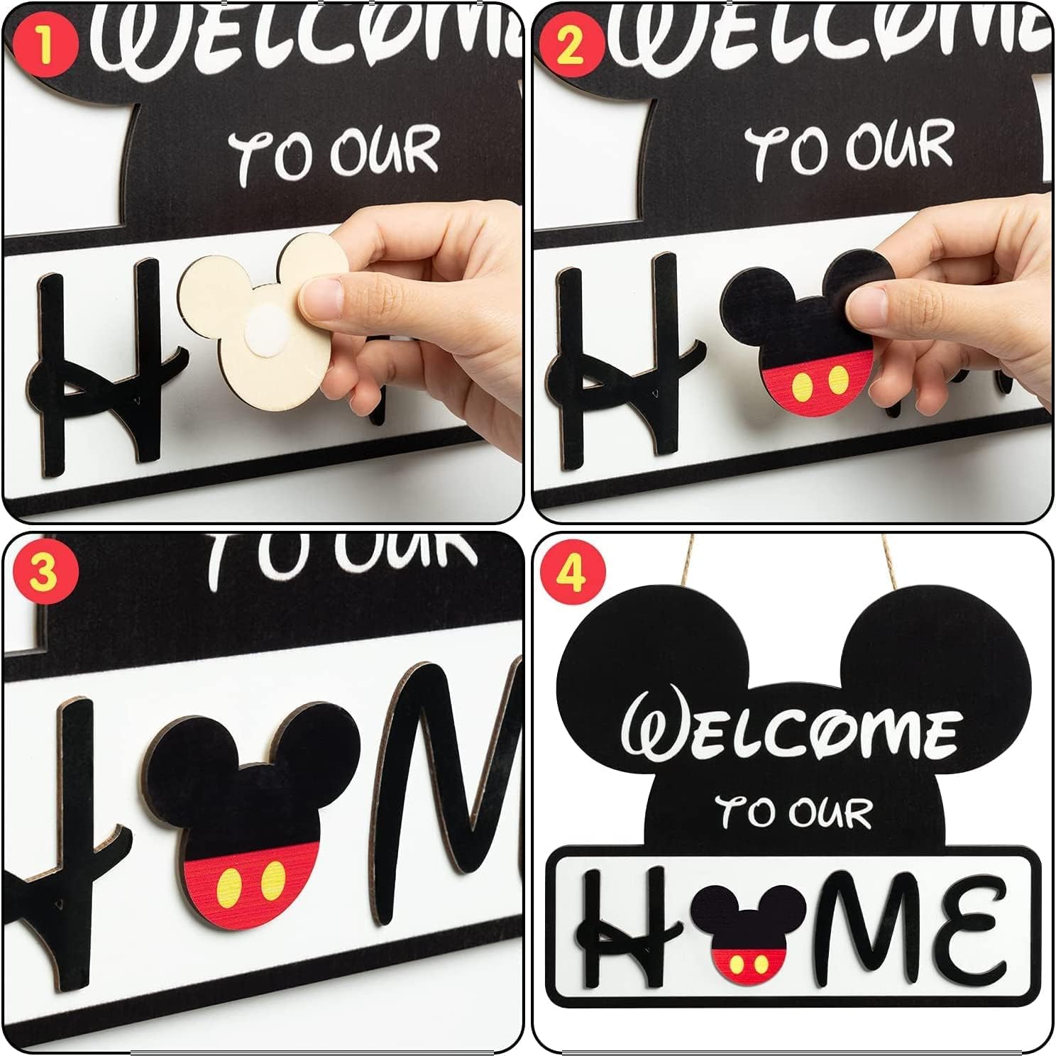 19Pcs Cute Mouse Interchangeable Seasonal Welcome Door Sign for Front Door Decor, Welcome to Our Home Sign with Interchangeable Holiday Pieces for Farmhouse/Wall/Porch Decor and Housewarming