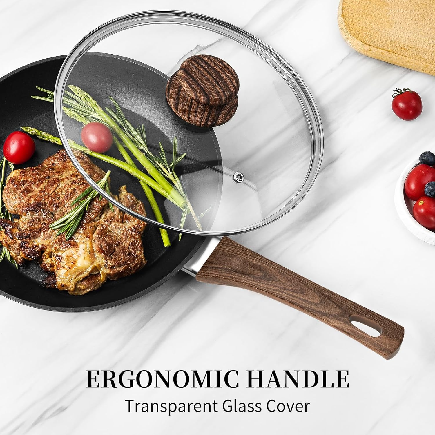 • 【Superior Non Stick Frying Pans】- Frying pans nonstick with lid set use excellent non stick coating technology, has superior abrasion resistance and extreme long-lasting. Nonstick frying pan gives us a healthy pan,less oil,non toxic,PFOA&APEO free.