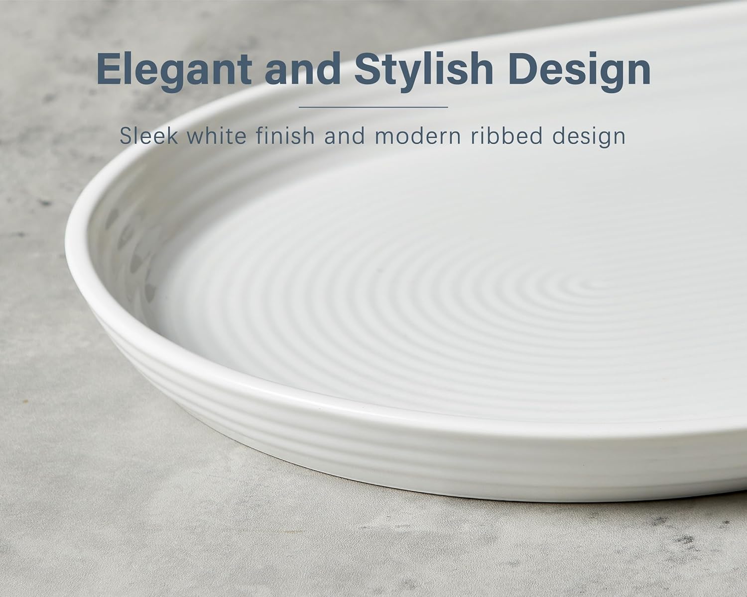 • Sturdy Ceramic Construction: Made from high-fired, lead-free porcelain, these thick and sturdy platters are oven, microwave, dishwasher, and freezer safe, ensuring long-lasting daily use