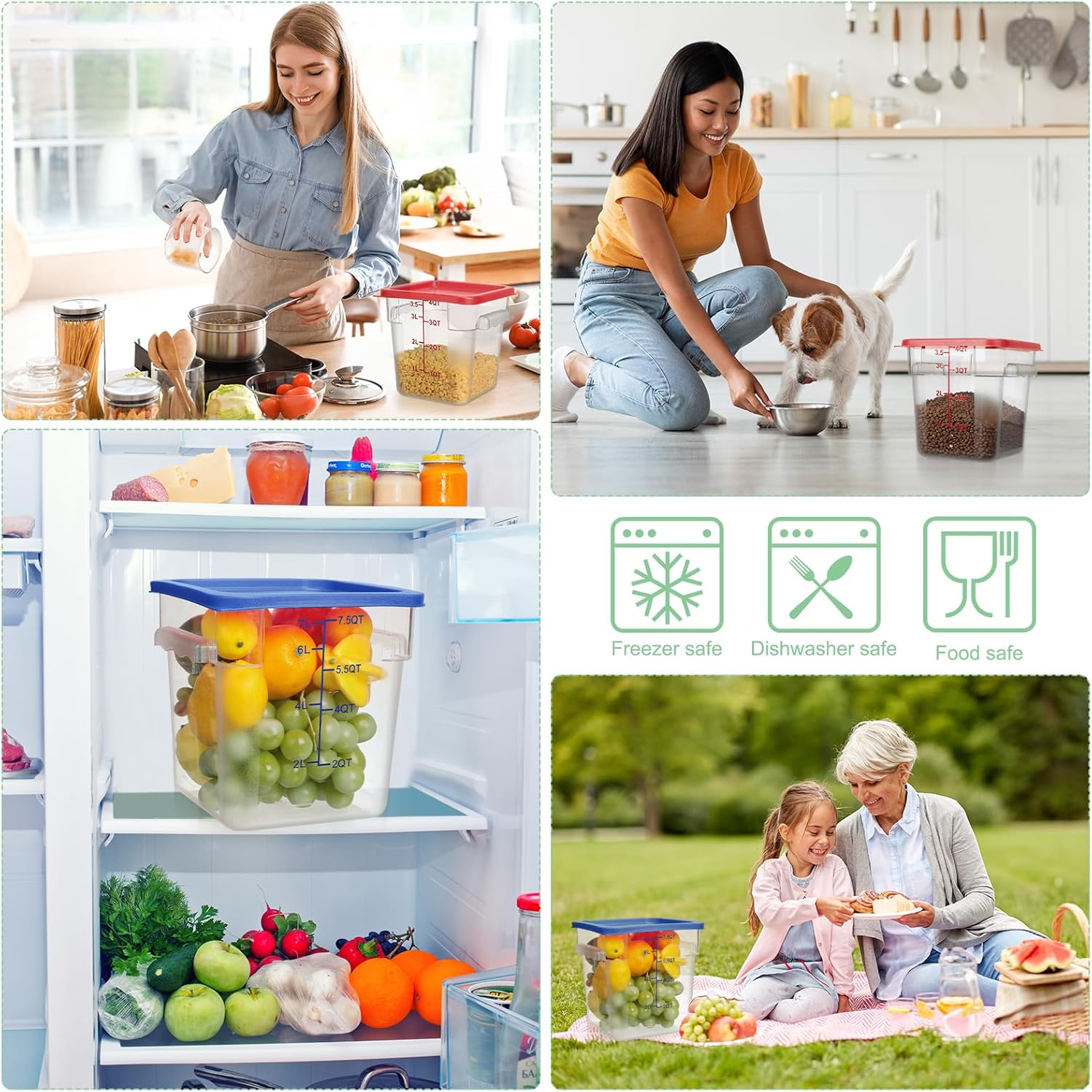 Lallisa 4 Pcs 8 Qt and 4 Qt Clear Food Storage Containers with Lids, Handles and Scales, Commercial Grade Square Containers Polycarbonate Air Tight for Home Storage Kitchen Restaurant(Red, Blue)