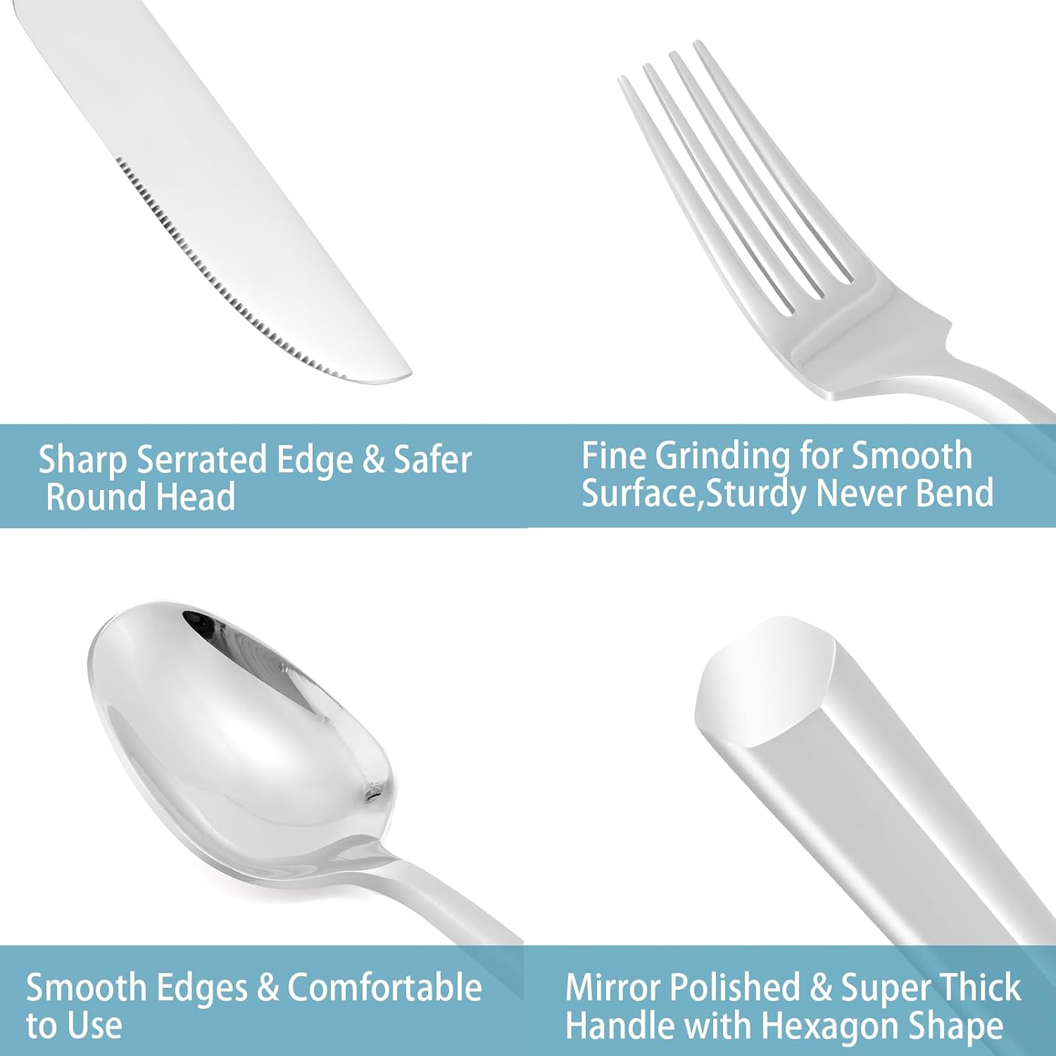 DEACORY Silverware Set Flatware Set Stainless Steel Cutlery Set Silver Mirror Finished Hexagon Handle 5 Pieces Service for 1