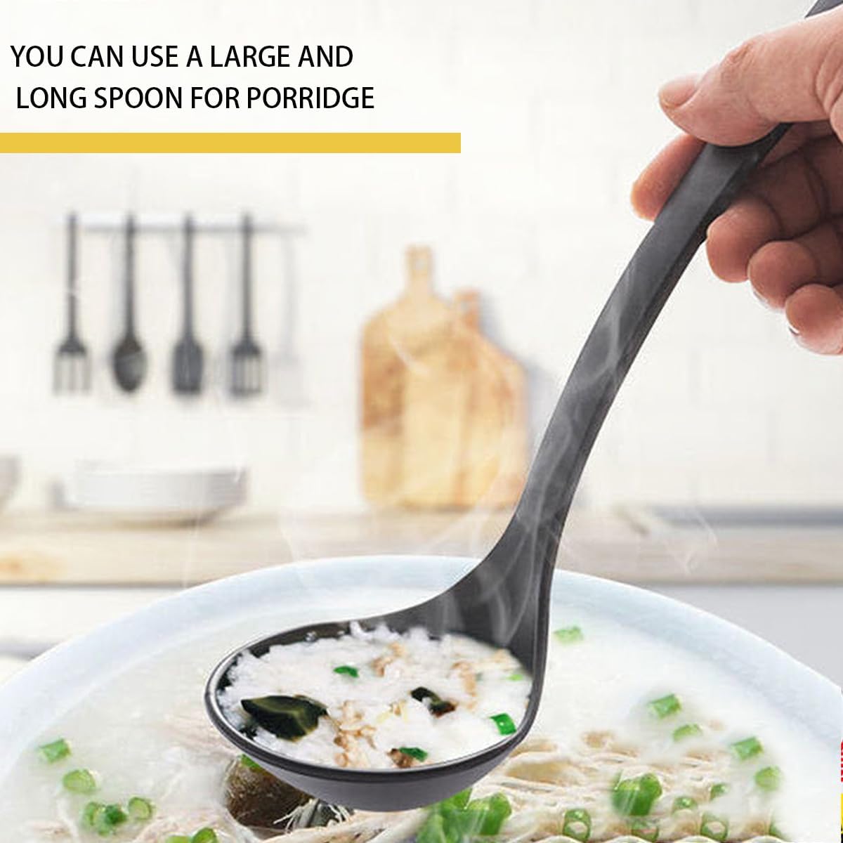 • Comfortable holding:Perfect streamlined shape makes it easier for your palm to grip,the rice soup spoon set is lightweight and portable, the service is long, it is not easy to wear, it is not easy to deform