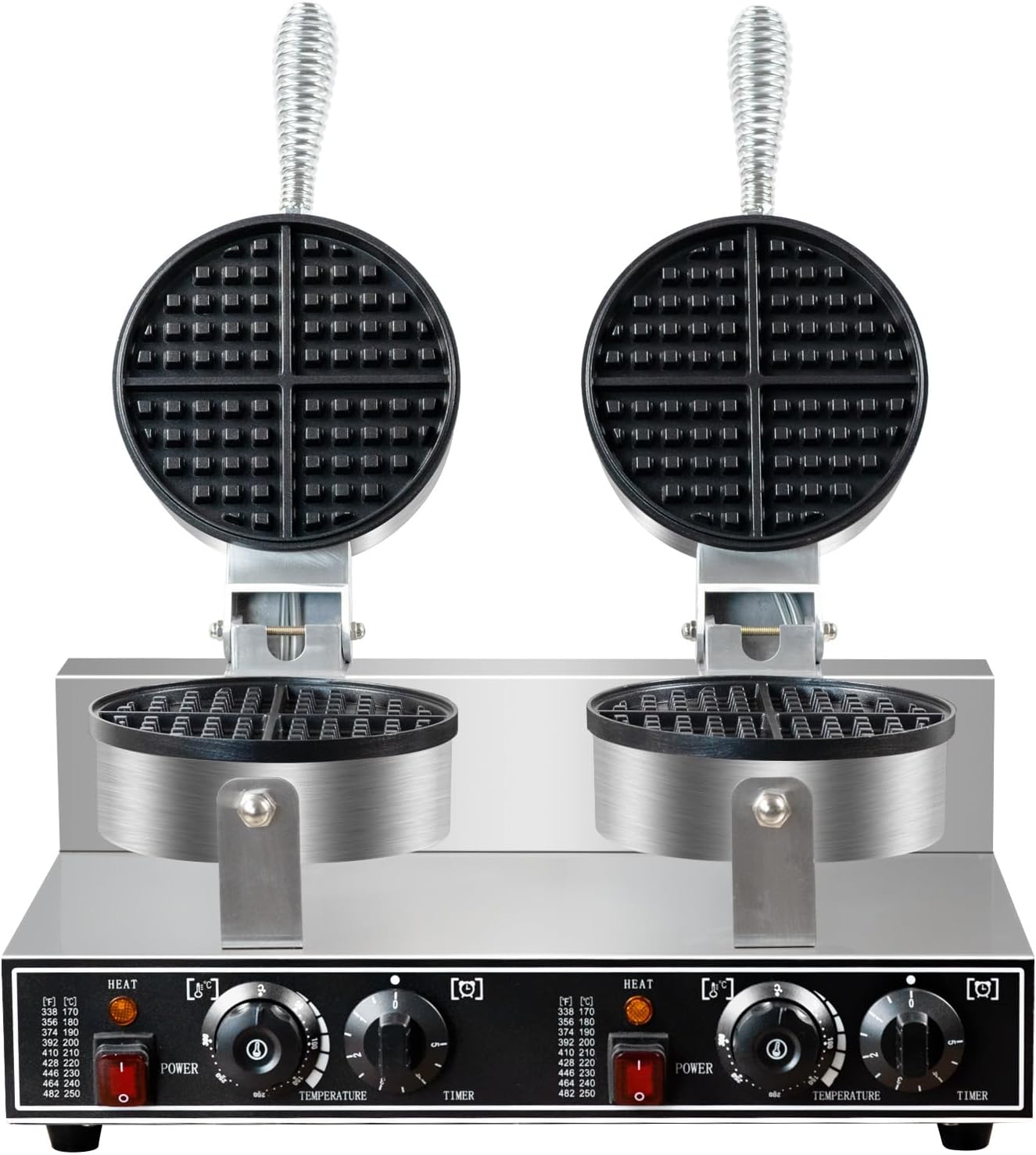 110V 2600W Commercial Double Waffle Maker,Non-Stick Commercial Waffle Baker,Stainless Steel Belgian Waffle Iron for Restaurant Party Food Stall, Bakery Snack Bar Family