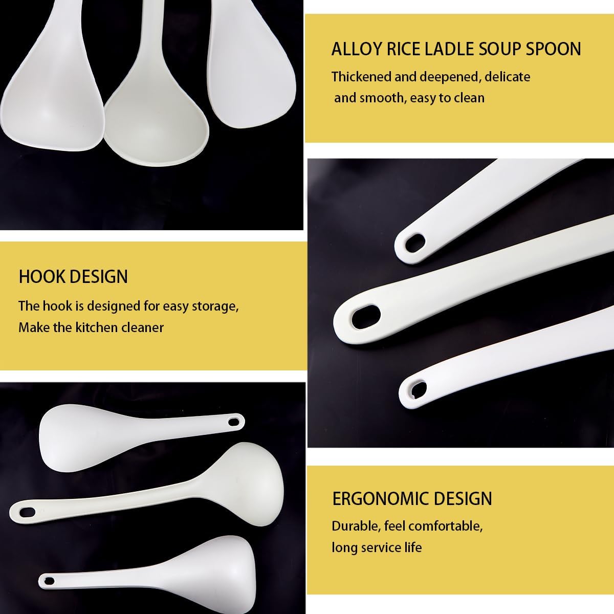 DOERDO 3Pcs Rice Paddle Spoon Soup Spoon Non Stick Rice Scooper Rice Spatula Cooking spoon for Rice Soup Potato, White