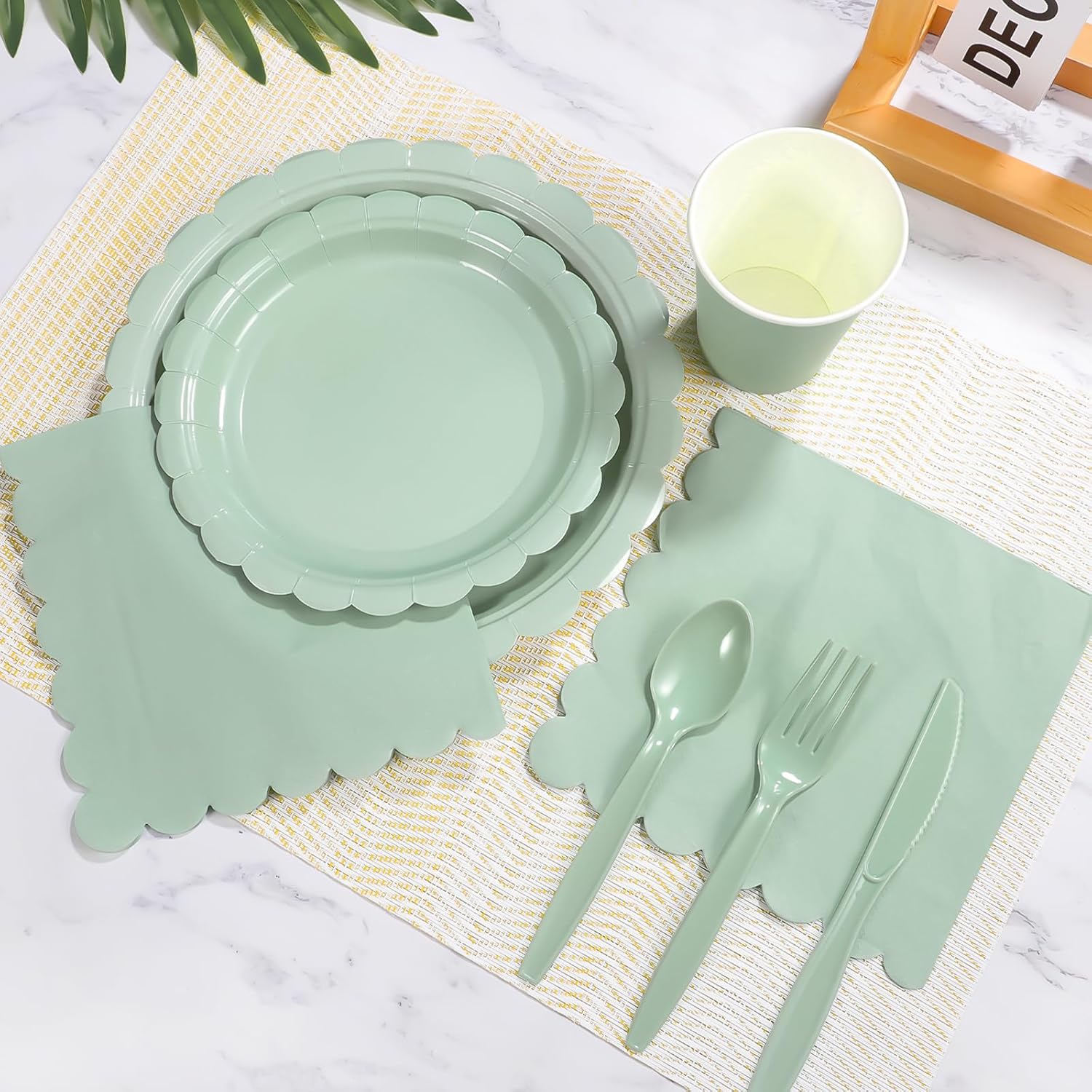 • Providing Convenience:Do you have trouble of spending much time cleaning up tableware after party? Now with this Sage green party tableware, you can spend more time with family or friends afterparty and spend less time cleaning up, saving time and effort