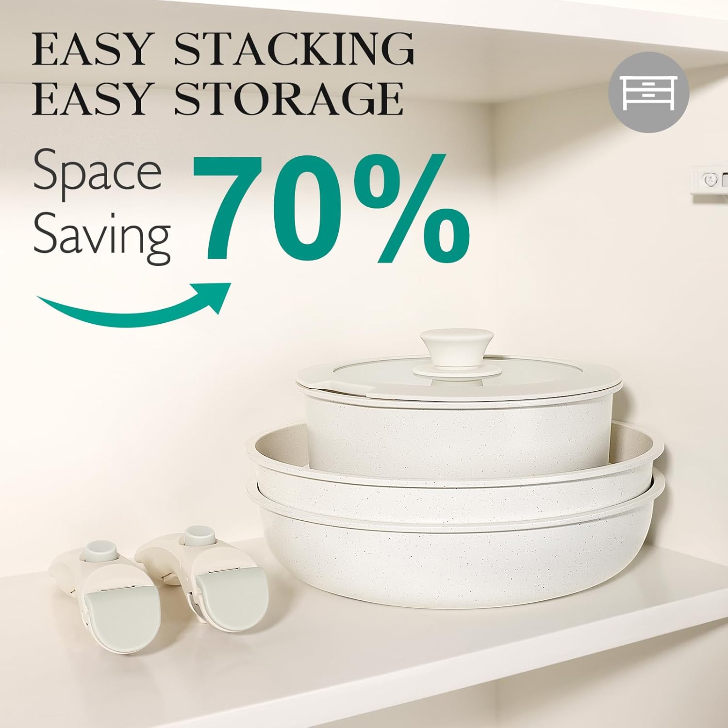 GiPP Non Stick Frying Pans Set Removable Handle, Oven Safe Nonstick Fry Pan Skillets with Detachable Handle, Granite Coating Healthy Cooking Compatible with All Stovetops, PFOA Free, RV Cookware set