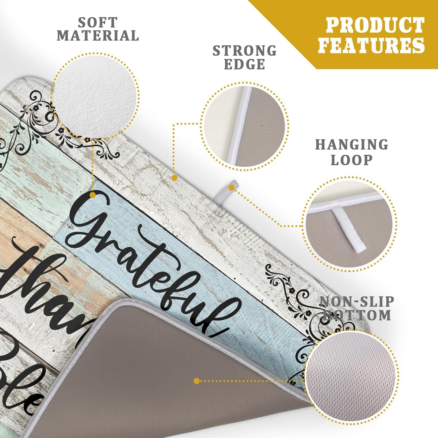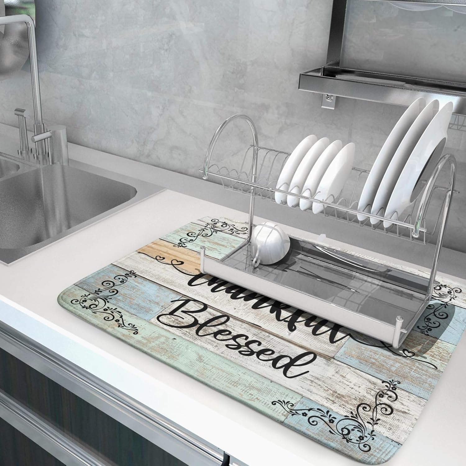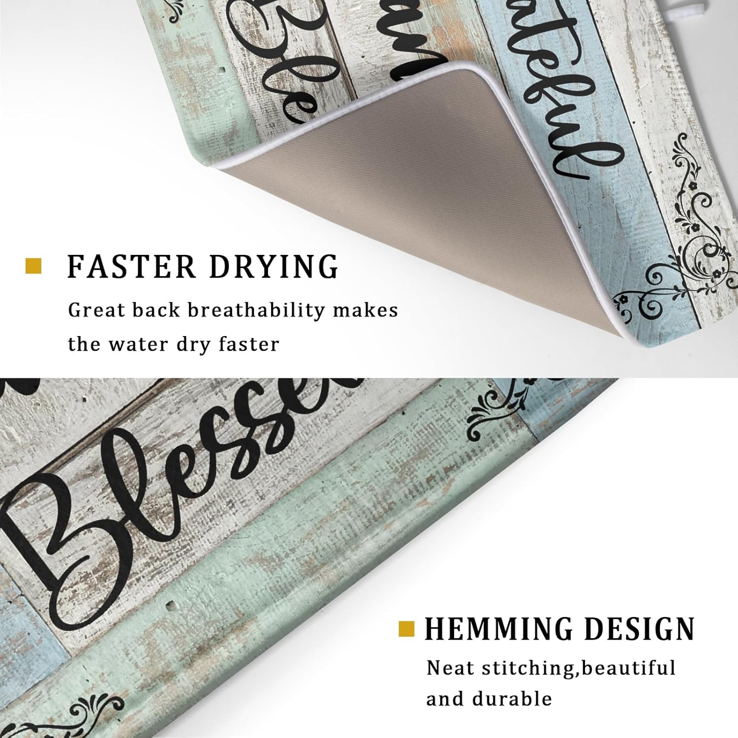 Rustic Wood Dish Drying Mat 18x24 Inch Grateful Thankful Blessed Kitchen Drainer Mats Absorbent Microfiber Rack Holder Countertop Pad
