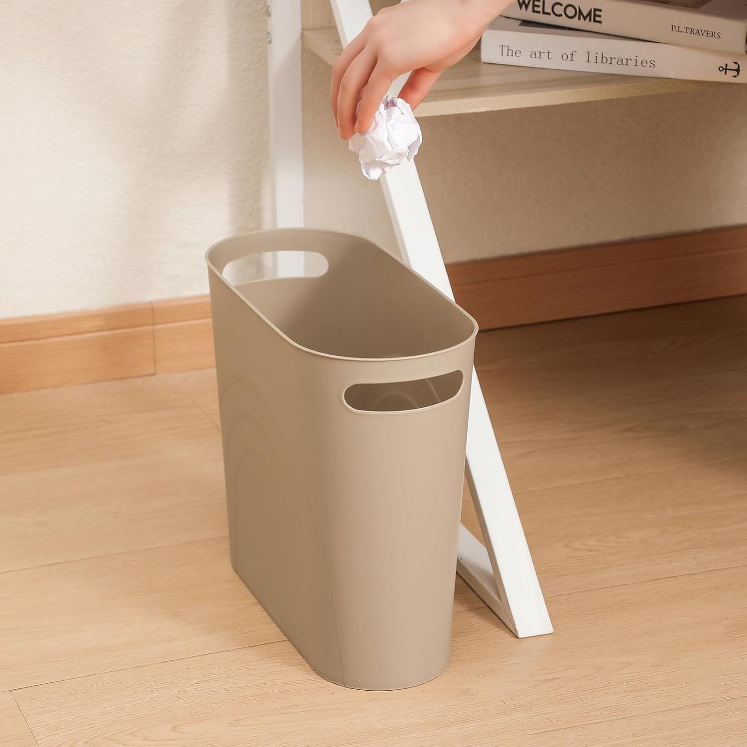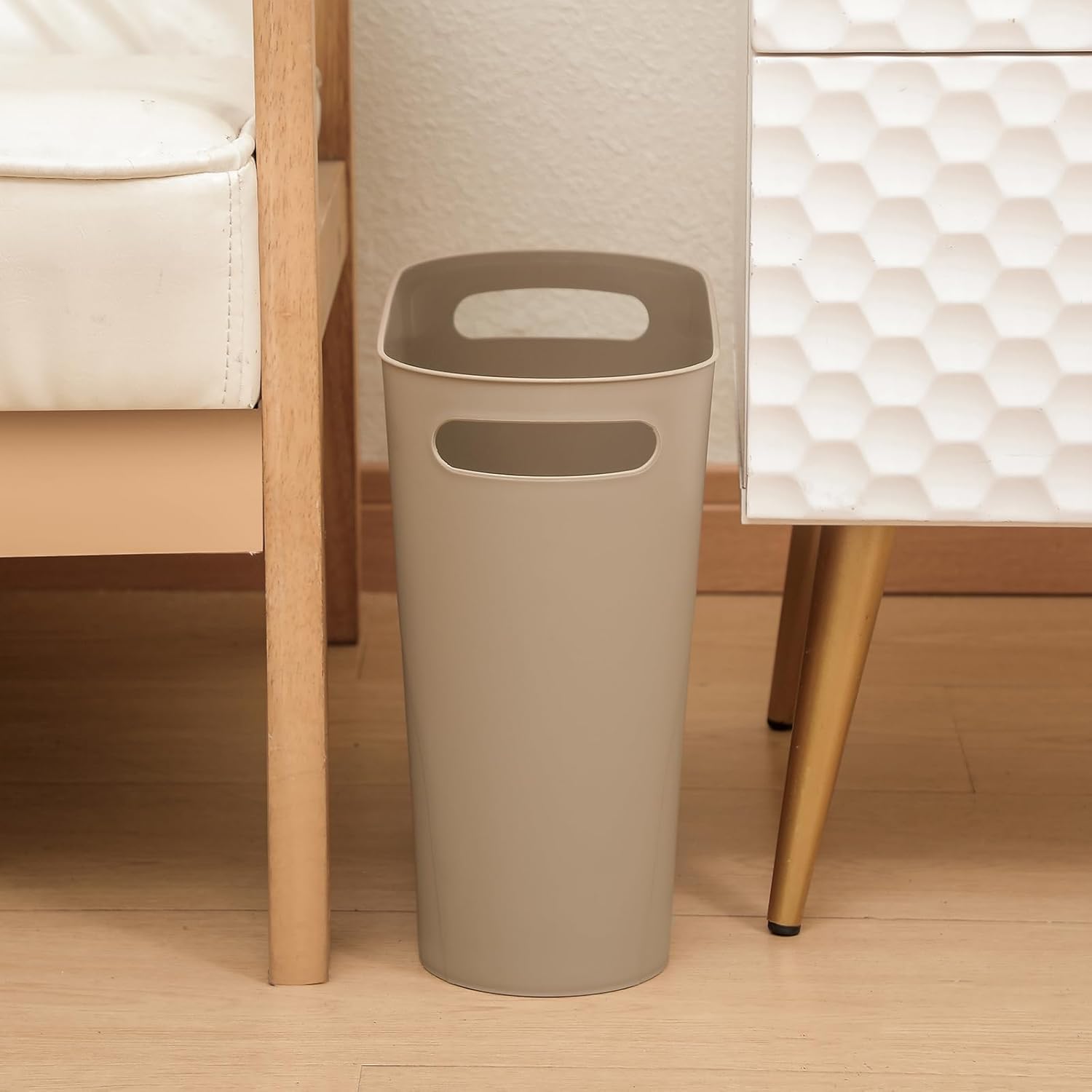 rejomiik Small Trash Can, Slim Garbage Can Plastic Waste Basket with Handles 3.5 Gallon Container Bin for Narrow Spaces Bathroom, Bedroom, Kitchen, Office at Home, 2 Pack Khaki