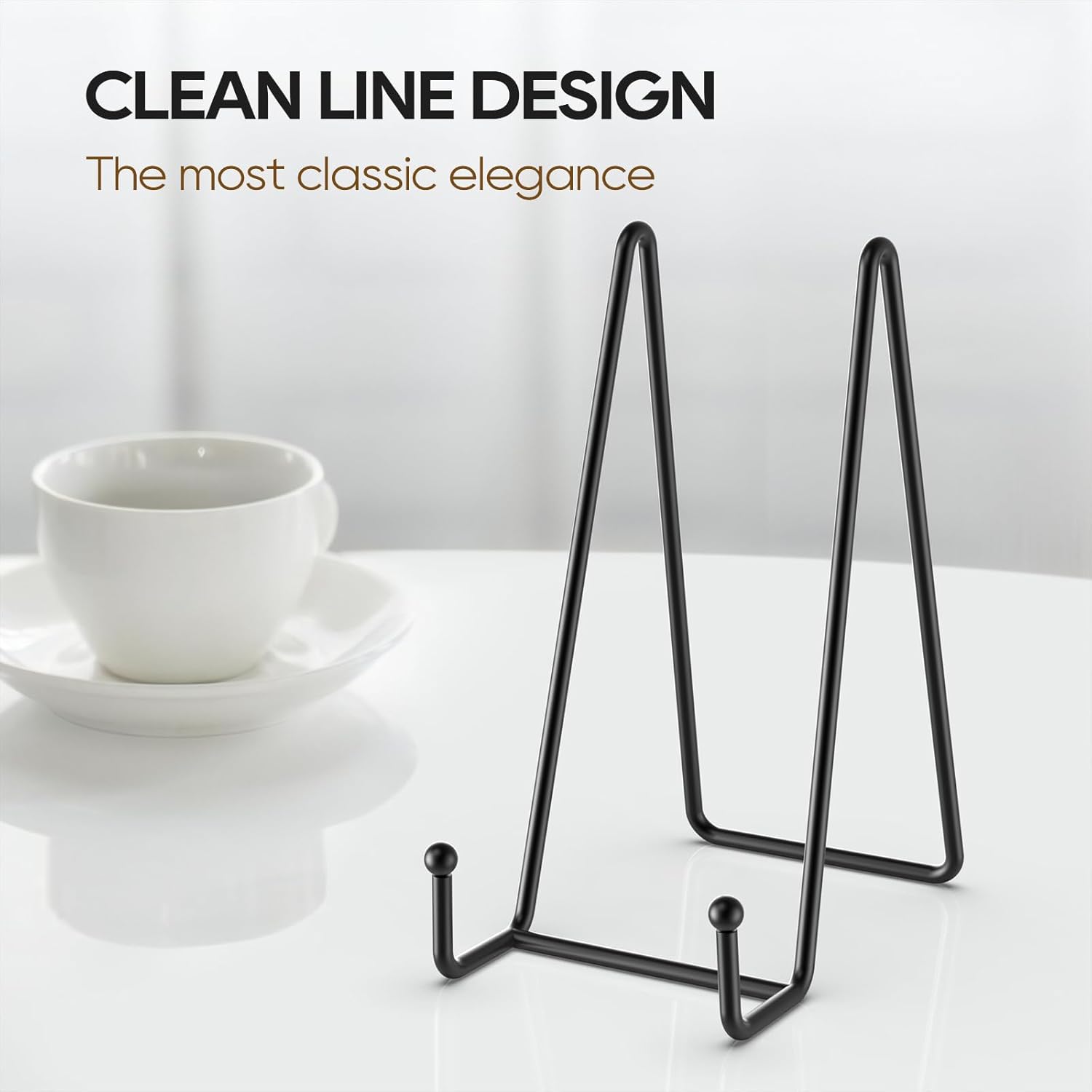 HONGYUTAI 3 Pack 8 Inch Plate Stands for Display Picture - Table Top Display, Decorative Metal Frame Holders for Book, Photo and Platter, Tabletop Art, Black