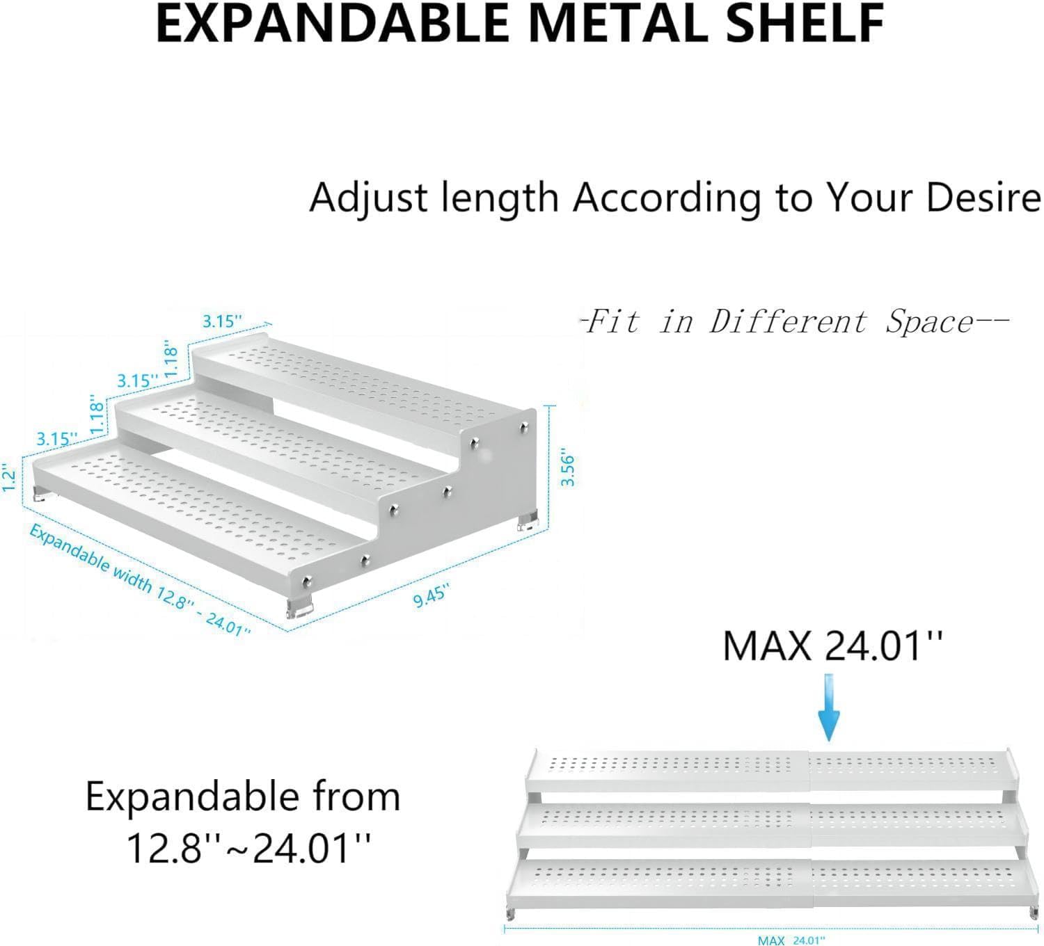 • ⭐[Expandable]The width of spice rack can be expandable from 12.8 to 24.01 inches which can be adjusted according to your needs to effectively utilize your storage space. It is save storage solution for spice jars.