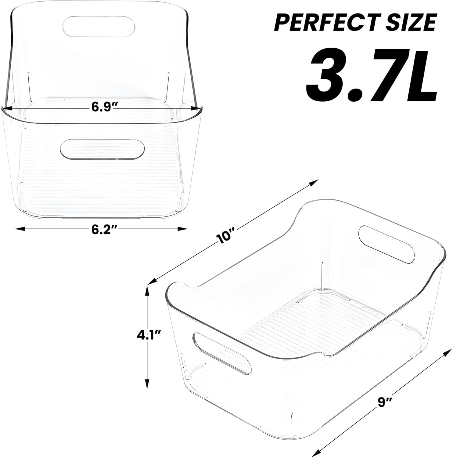 • Durable and Stackable: These storage bins are made of high-quality clear PET materials, which is durable, sturdy. The bins are stackable, allowing you to save space and create a tidy and organized environment.