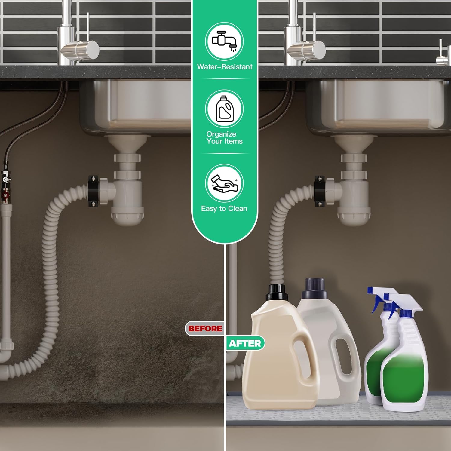 • Compatible Sizes: The TRZZ under sink mat measures 22" x 19" with a 0.6-inch depth to effectively handle water from cabinet leaks; not suitable for cabinets smaller than 22" x 19"