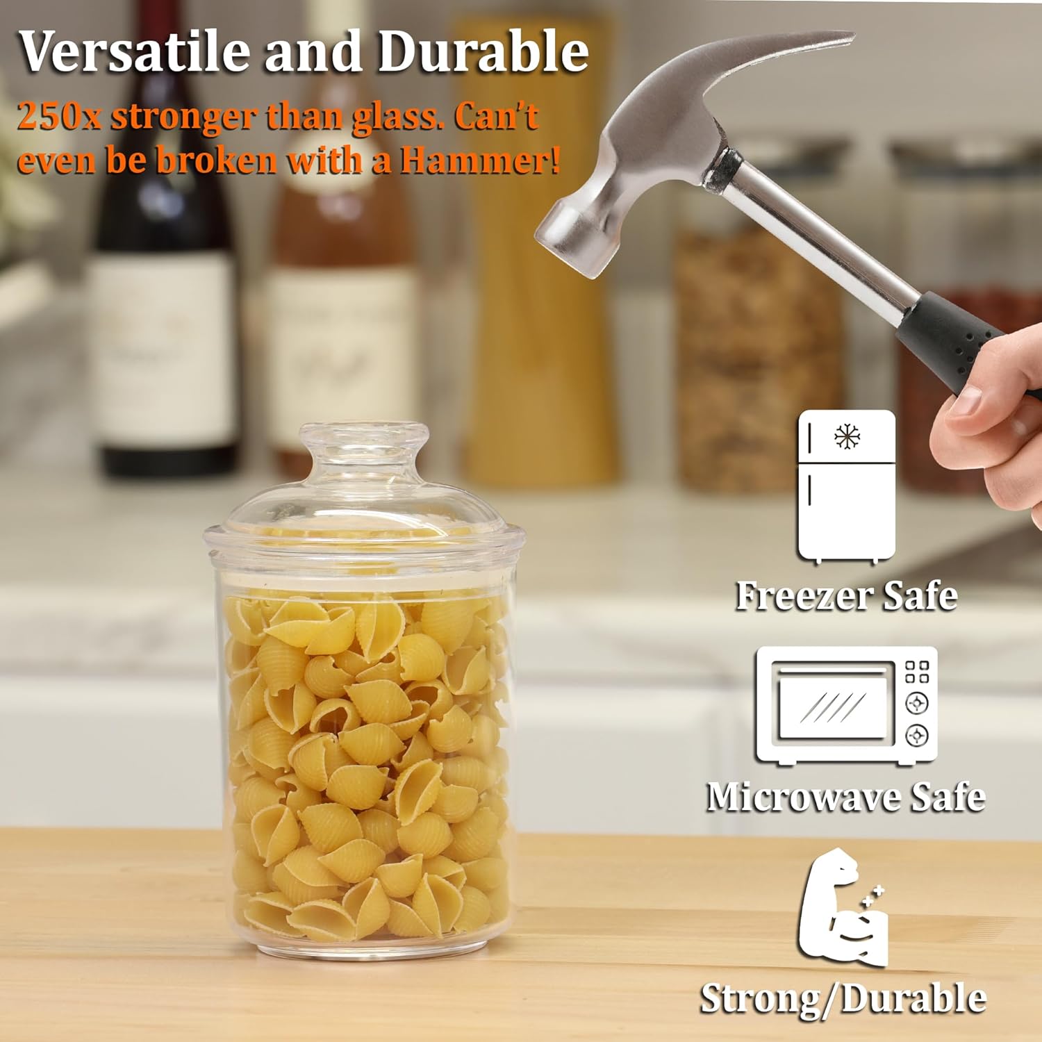 • SUPERIOR CONSTRUCTION: Crafted from ultra-strong acrylic, the same material trusted in the manufacturing of baby bottles, our jar sets the standard with its virtually shatterproof design, capable of withstanding high drops and even impact from a hammer. Moreover, its non-toxic, food-safe, and dishwasher-safe properties ensure both safety and convenience for your culinary needs..