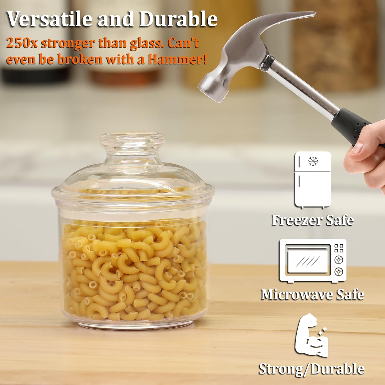 • SUPERIOR CONSTRUCTION: Engineered from exceptionally durable acrylic, our jar sets the standard with its virtually shatterproof design, capable of withstanding high drops and even impact from a hammer. Moreover, its non-toxic, food-safe, and dishwasher-safe material ensures both safety and convenience for your culinary needs.