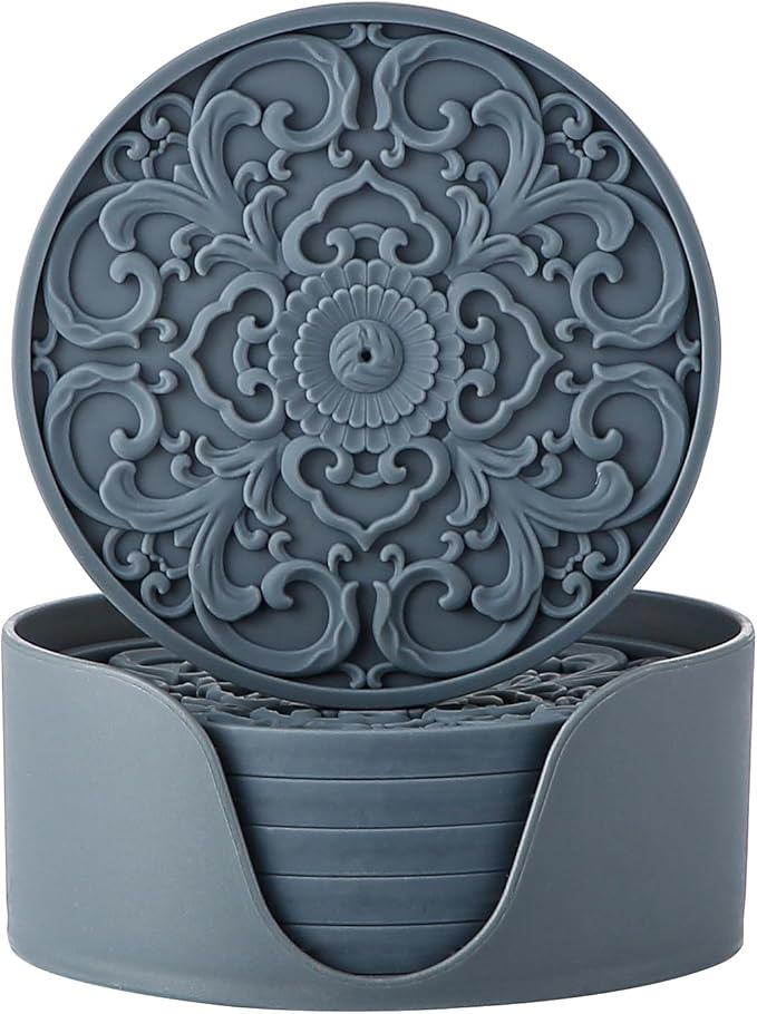 • 3 DECORATIVE AND DOUBLE-SIDED PATTERNS: Coasters set of 6 has 3 carved and decorative patterns. Six coasters and a color matched holder are included in the set, with two coasters each of three patterns. Gift box packaging. Round 3.9" is a nice size for most cups and mugs. Ideal for room and home decor. Good for outdoor use as well.