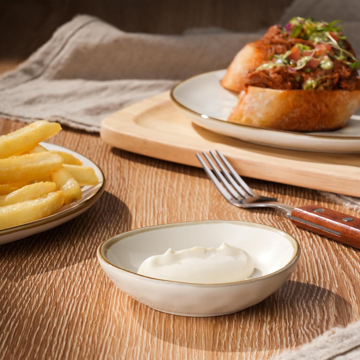 • Special Wave Design: Our dip bowls showcase a distinctive undulating design on their surface, creating an uneven appearance under light, highlighting the charm of handcrafted artistry.