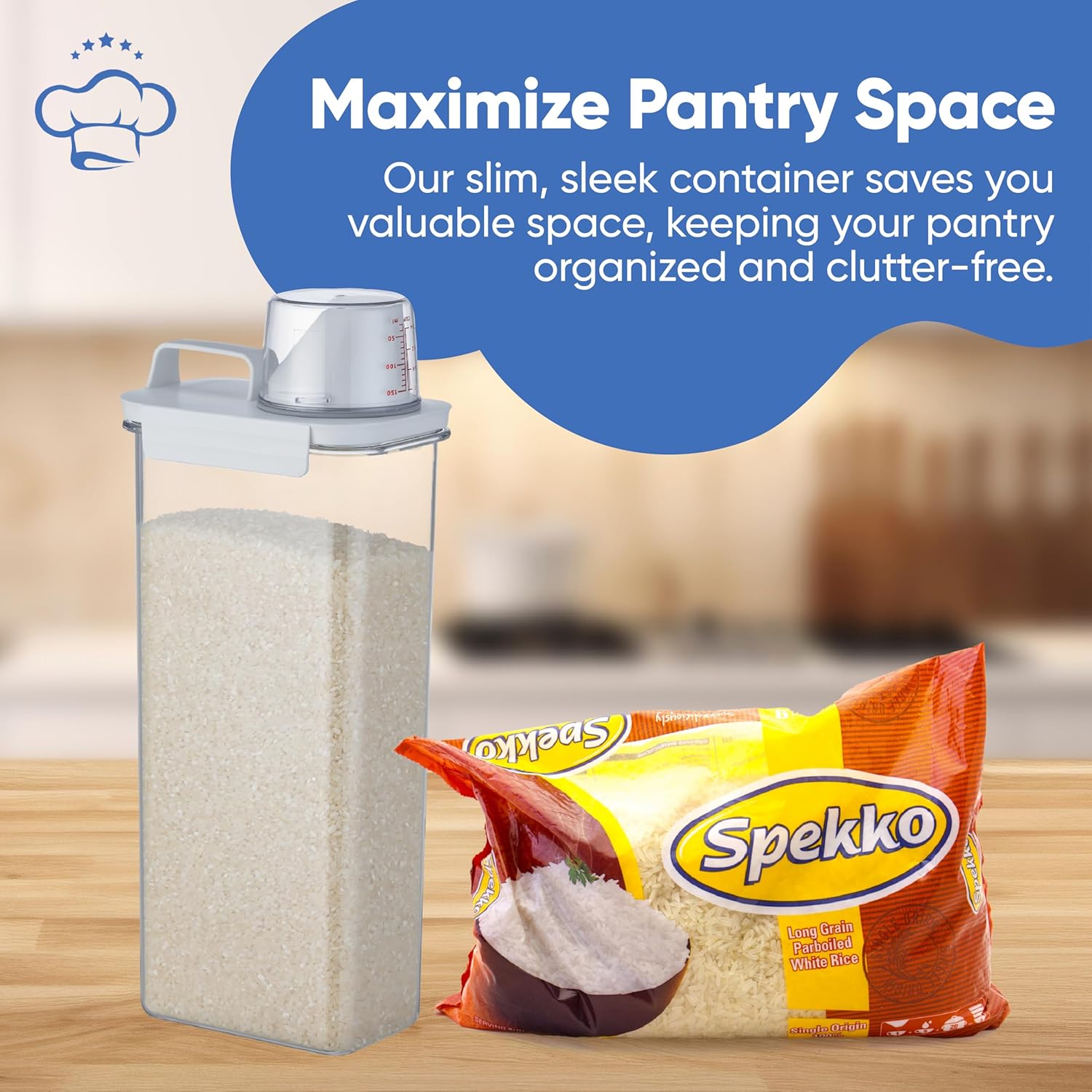 Chef's Path Airtight Food Storage Containers, Pack of 2 – 2.9L Cereal and Pasta Storage Organizer with Spout, Handle, & Measuring Cup Lid – Kitchen & Pantry Organizer for Food & Baking Supplies
