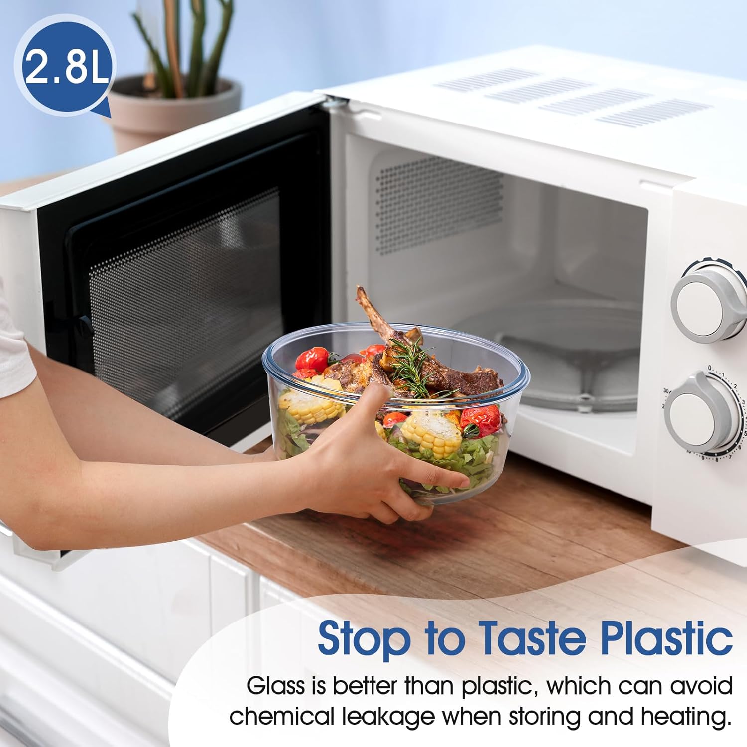 2.8L Glass Food Storage Containers Set, Round Meal Prep Containers, Glass Bowls With Lid