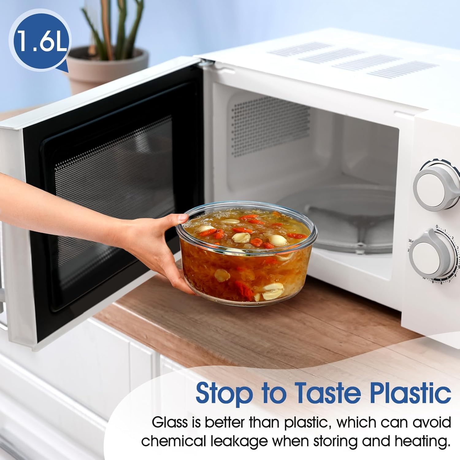NUTRIUPS 1.6L Glass Food Storage Containers, Round Meal Prep Containers, Glass Bowls With Lid