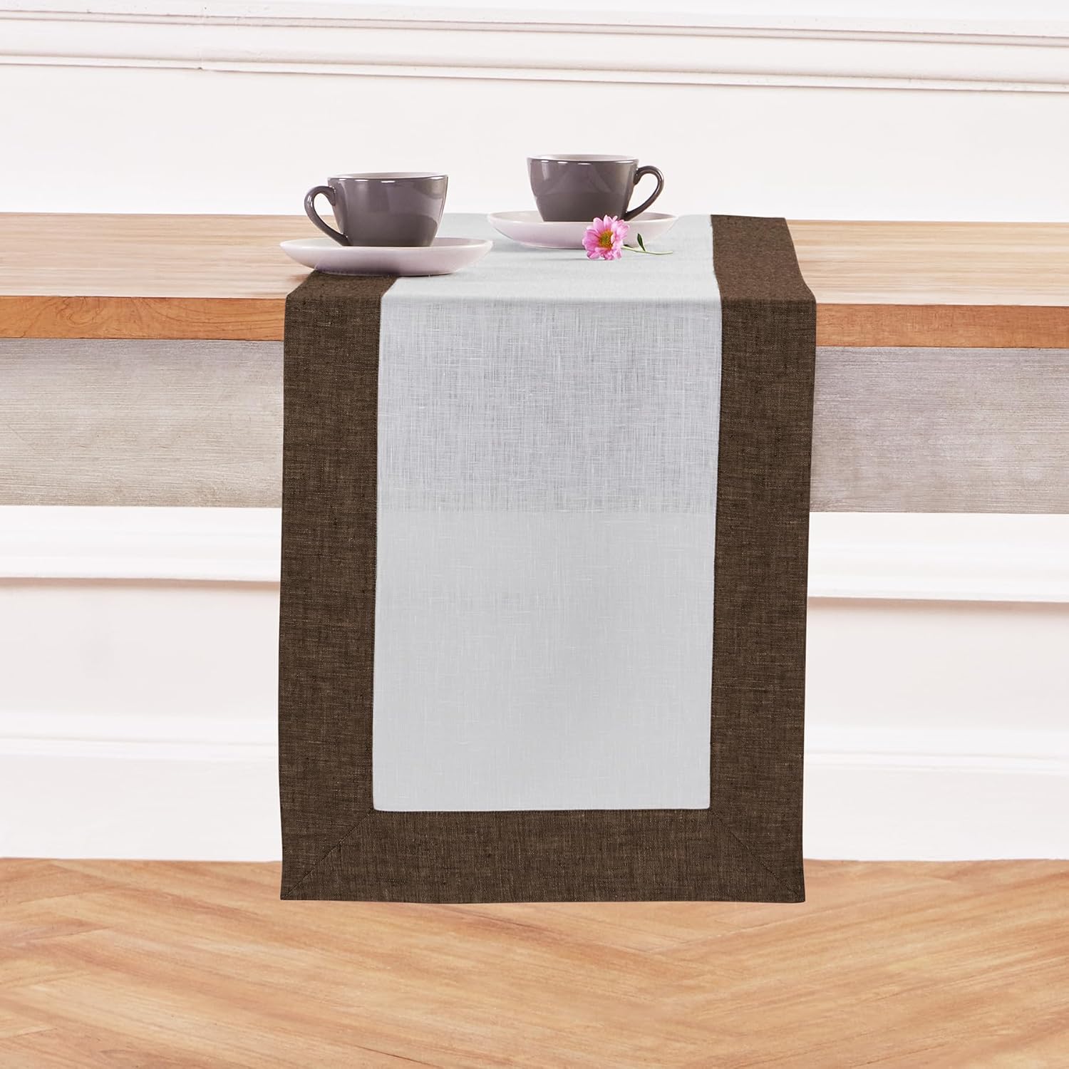 • 𝗖𝗼𝗺𝗽𝗼𝘀𝗶𝘁𝗶𝗼𝗻 𝗮𝗻𝗱 𝗖𝗿𝗮𝗳𝘁𝘀𝗺𝗮𝗻𝘀𝗵𝗶𝗽 : 100% Pure European Flax Linen Chambray Brown and White Fall Table Runner - 𝗖𝗼𝗻𝘁𝗲𝗺𝗽𝗼 | Handcrafted By Skilled Artisans.