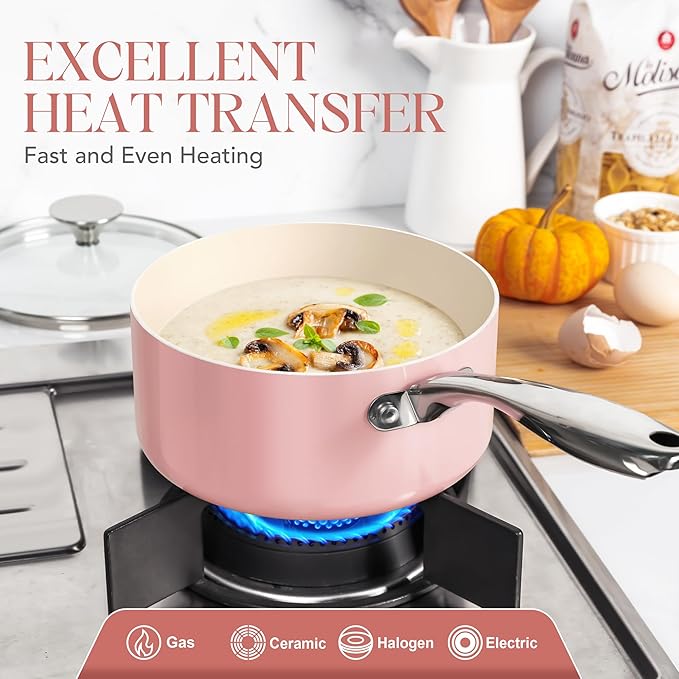 • Durable for Use - Made with high-quality ceramic coating, our sauce pan sets are built to last, known as resistant to scratching, chipping, and peeling.