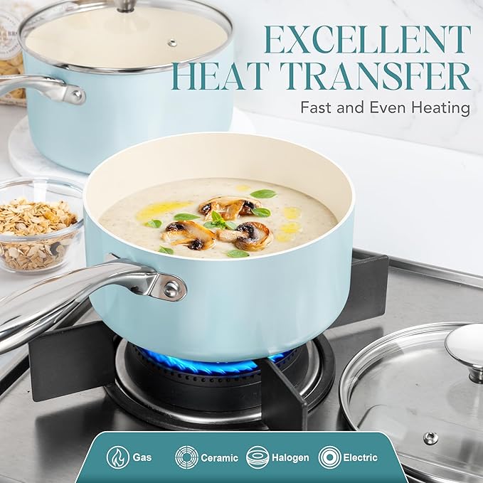 • All-Cooktop Compatibility - Experience the convenience of effortless cooking on different types of cooktops. Our non stick sauce pans can be used on all cooktops, including gas, electric, glass, and induction(except 1-quart one).