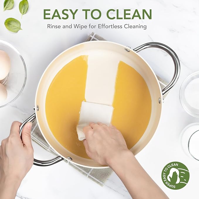 • Superior Nonstick Performance: The advanced nonstick coating prevents food from sticking, making cleaning a breeze and reducing oil use by 90%. Its durability ensures long-lasting nonstick performance, maintaining its quality over time. Hand washing recommended.