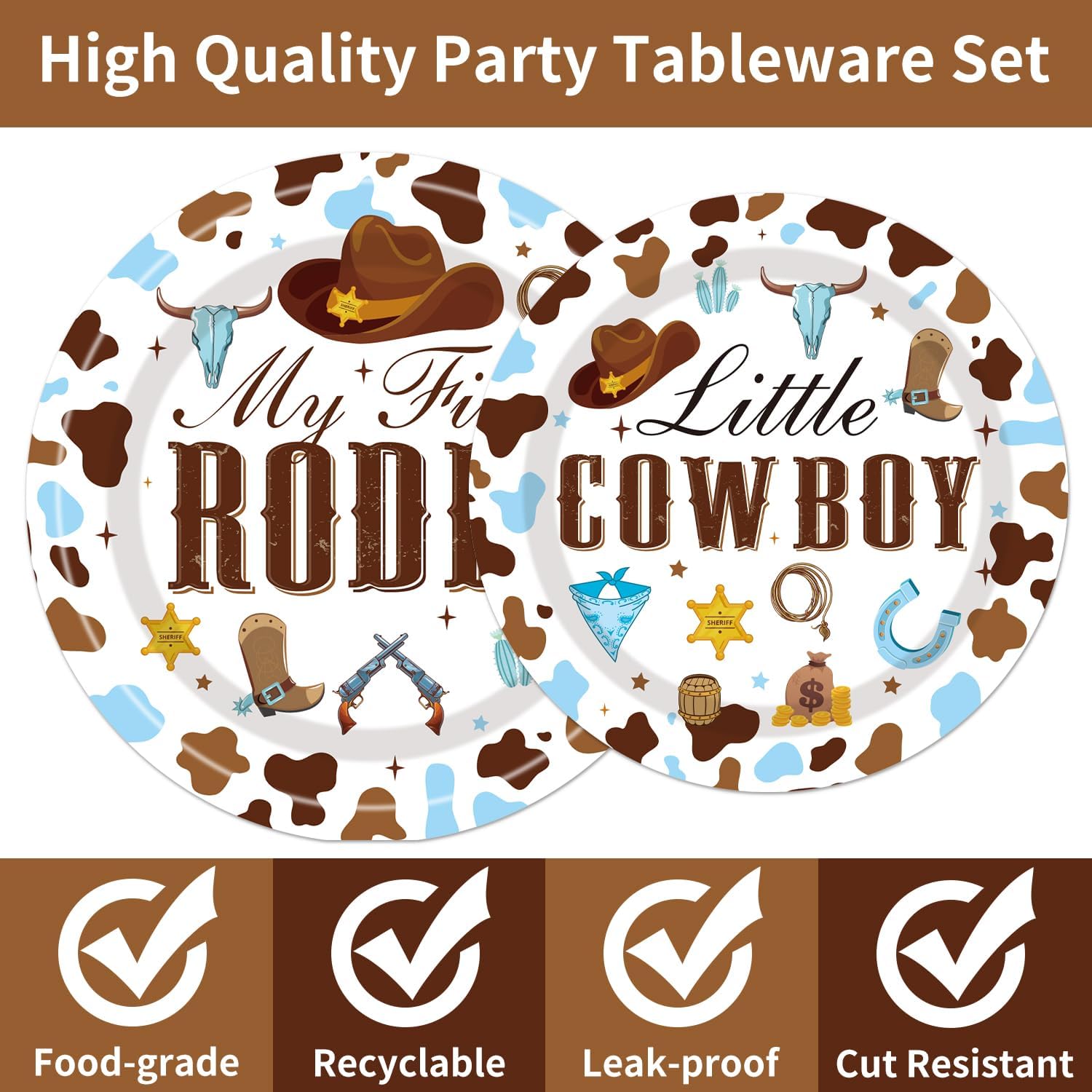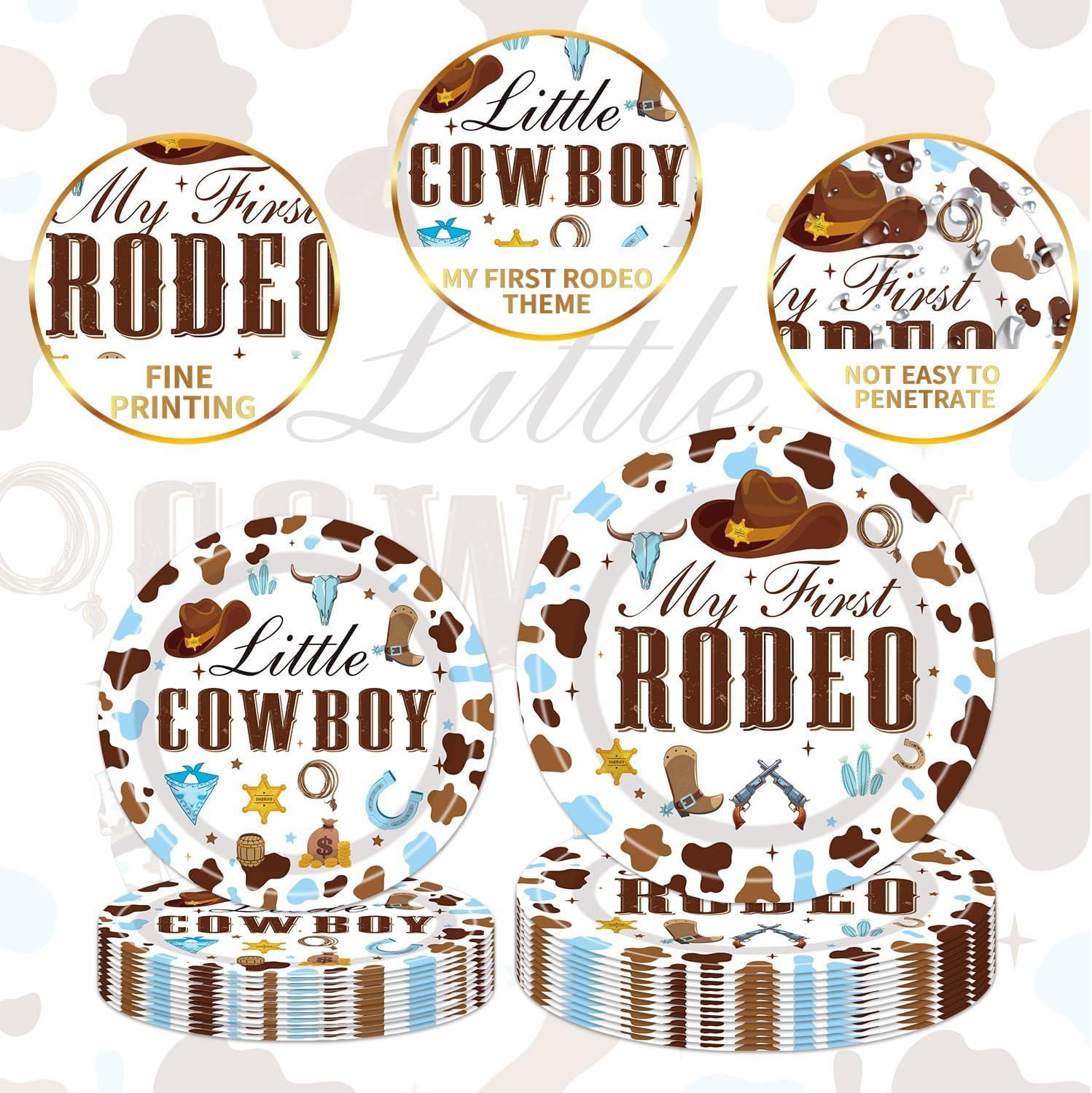 My First Rodeo Birthday Party Supplies - Western Cowboy 1st Party Decorations for Boy Baby Shower My First Rodeo Plates Napkin Forks Tableware Set | Serves 24 Guests