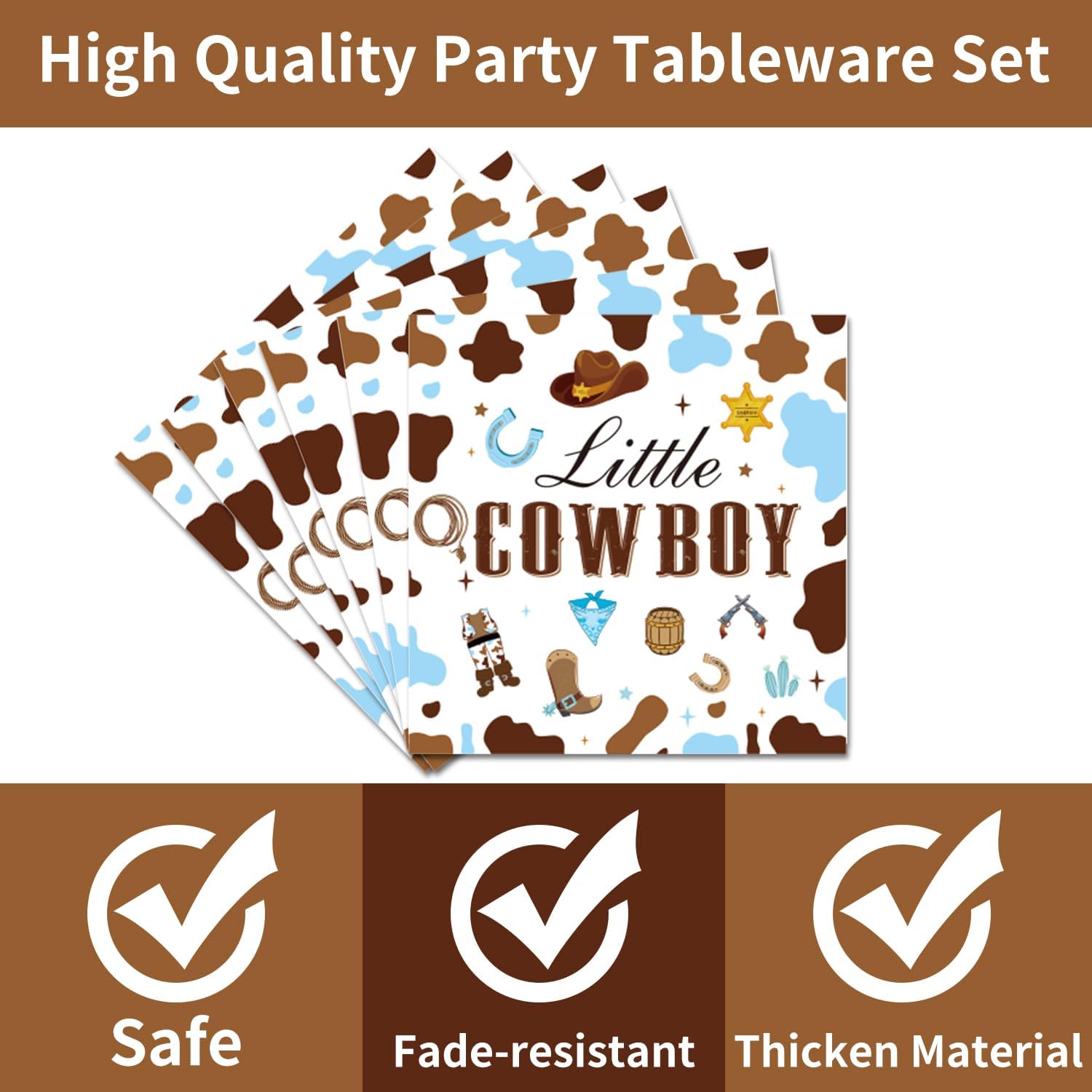 • Cowboy Pattern Decorations: Tableware often features cowboy-themed patterns like cowboy hats, boots, lassos, etc,creating a wild and energetic feeling.These patterns can appear on plates, cups, napkin wrapper, adding a fun visual appeal to the party and immersing guests in cowboy vibes.
